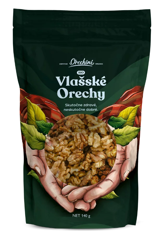 BIO vlašské orechy Orechini sú ideálnou voľbou na zdravé maškrtenie i pečenie. 60 % balenia tvoria celé polovice – krásne sa hodia na zdobenie dezertov, menšie kúsky využijete do granoly, kaše alebo šalátov. Pestované a balené priamo na našej farme, bohaté na vitamín B, omega-3 a omega-6. Podporujú pamäť, srdce a pomáhajú znižovať cholesterol. Uchovávané v chladenom sklade, 100 % slovenský produkt v praktickom doypack sáčku. Váha: 140 g