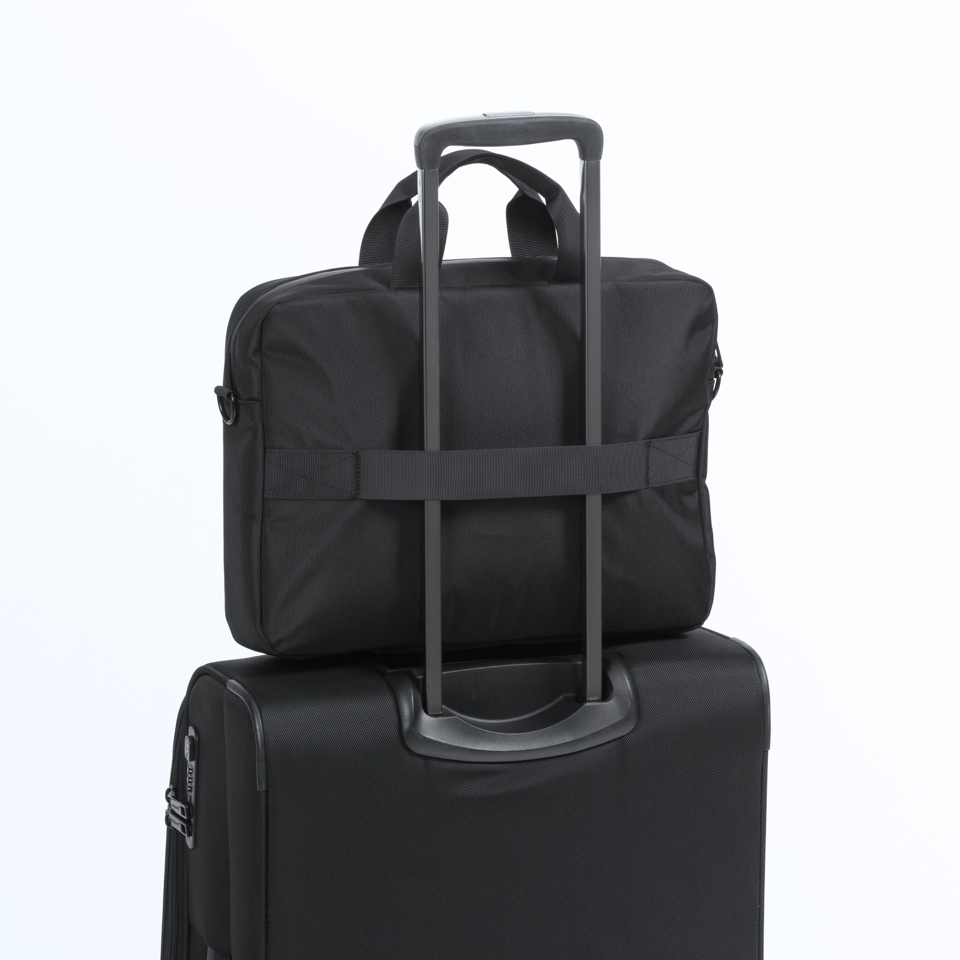 Elegantná obchodná taška na notebook vyrobená z hustého a odolného 1260D polyesteru. Jednokomorová taška je vybavená špeciálnym vreckom na 15 "notebook a dvoma ďalšími vreckami, ideálnymi pre uloženie príslušenstva, ako je telefón alebo nabíjačka. Vonkajšie vrecko má navyše pútko na pero. Pre pohodlné cestovanie bol na zadný panel prišitý upevňovací pásik, ktorý umožňuje bezpečné pripevnenie tašky k držiaku kufra. pohodlné nosenie v akejkoľvek situácii.