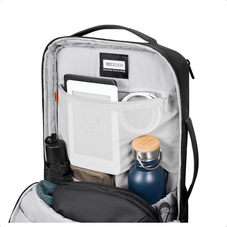 Bobby Air je štíhly a elegantný batoh navrhnutý pre pohodlné každodenné dochádzanie. Jeho čistý, uhladený tvar vyvažuje biznisový a ležérny štýl, doplnený jemnými líniami a minimálnymi krivkami. Zipsy s PU povrchovou úpravou a vodoodpudivá tkanina chránia vaše veci, zatiaľ čo rýchloprístupné vrecko a samostatná priehradka na 16" notebook udržiavajú všetko prehľadne usporiadané. Horné a bočné rukoväte poskytujú flexibilné možnosti nosenia. Batoh je vyrobený z odolného a ľahkého recyklovaného nylonu, pričom podšívka s technológiou AWARE™ zaručuje použitie pravých recyklovaných materiálov. 23 % recyklovaného obsahu. Registrovaný dizajn®.
