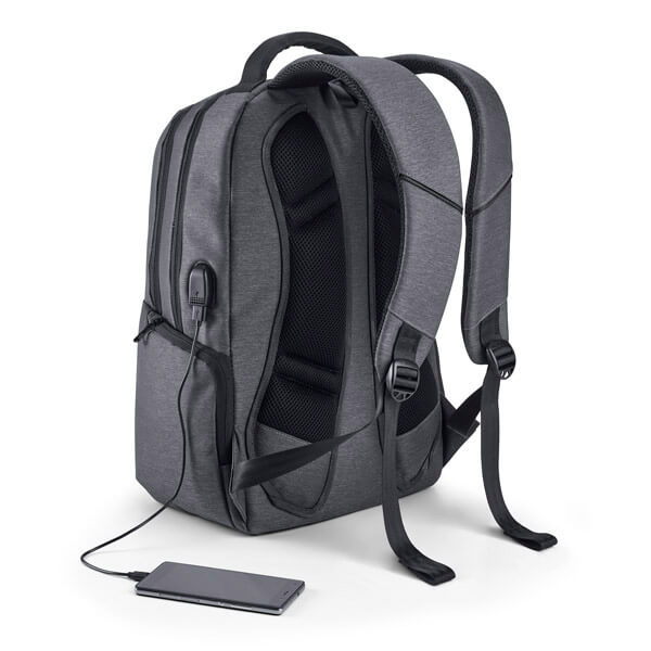 Vodotesný batoh na notebook z nylonu 2Tone s 2 priehradkami. Zadná časť je podšitá, má vnútornú kapsu na zips a vystlanú priehradku na notebook do veľkosti až 17"'. Predná priehradka je podšitá a má niekoľko vnútorných káps. Batoh má 2 predné kapsy a 2 bočné kapsy. Súčasťou je port USB a kábel USB / micro USB na pripojenie k mobilným zariadeniam (prenosná batéria nie je súčasťou balenia). Zadná časť je vystlaná a má vystlanú opierku chrbta a popruhy. Príslušenstvo nie je súčasťou. 310 x 470 x 200 mm