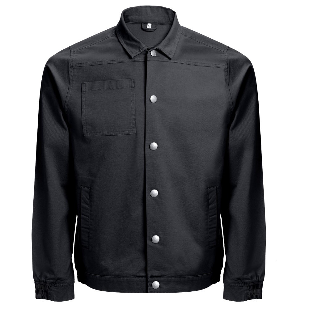 Pánska pracovná bunda. 98% bavlna a 2% spandex: 240 g/m². Štylizovaný golier. 2 bočné vrecká a 1 náprsné vrecko. Čiastočne elastické manžety a pás. Zapínanie na patentky. 2 záhyby na chrbte. Veľkosti: S, M, L, XL, XXL, 3XL