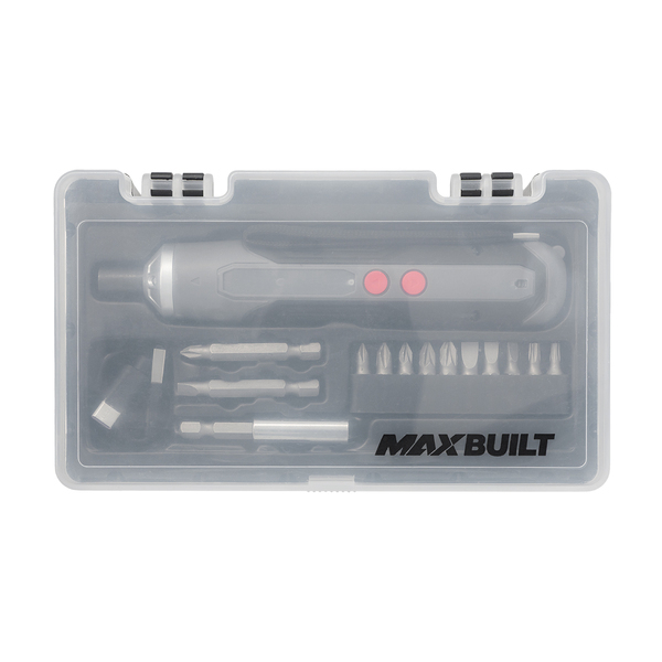 Súprava s akumulátorovým skrutkovačom v pevnom kufríku z plastu. Obsah: skrutkovač s ergonomickou rukoväťou a dvoma smerovými tlačidlami pre ľahké skrutkovanie a odskrutkovanie, 10 bitov rôznych veľkostí, 4 nástavce na bity, magnetický nadstavec a USB kábel na nabíjanie. Dobíjacia batéria 1 300 mAh, krútiaci moment 3 Nm, 250 ot./min.