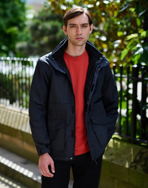 Vonkajšia bunda: 145 g/m², 100% polyester, telo so sieťovinovou podšívkou, vode odolná, priedušná (Isotex 10 000) a odolná voči vetru, skrytá kapucňa s nastavovačmi, 2 bočné vrecká na zips, 2 spodné cargo vrecká, vrecko na hrudi na zips, nastaviteľné manžety a sťahovacia šnúrka na páse, prekryté švy, zodpovedá norme EN343 triedy 3:2, skrytý vstup so zipsom v podšívke pre prístup k vyšívaniu, vnútorná bunda: 220 g/m², 100% polyester (Proti žmolkový Symmetry Fleece), 2 bočné vrecká na zips, nastaviteľný spodný lem so šťahovacou šnúrkou.