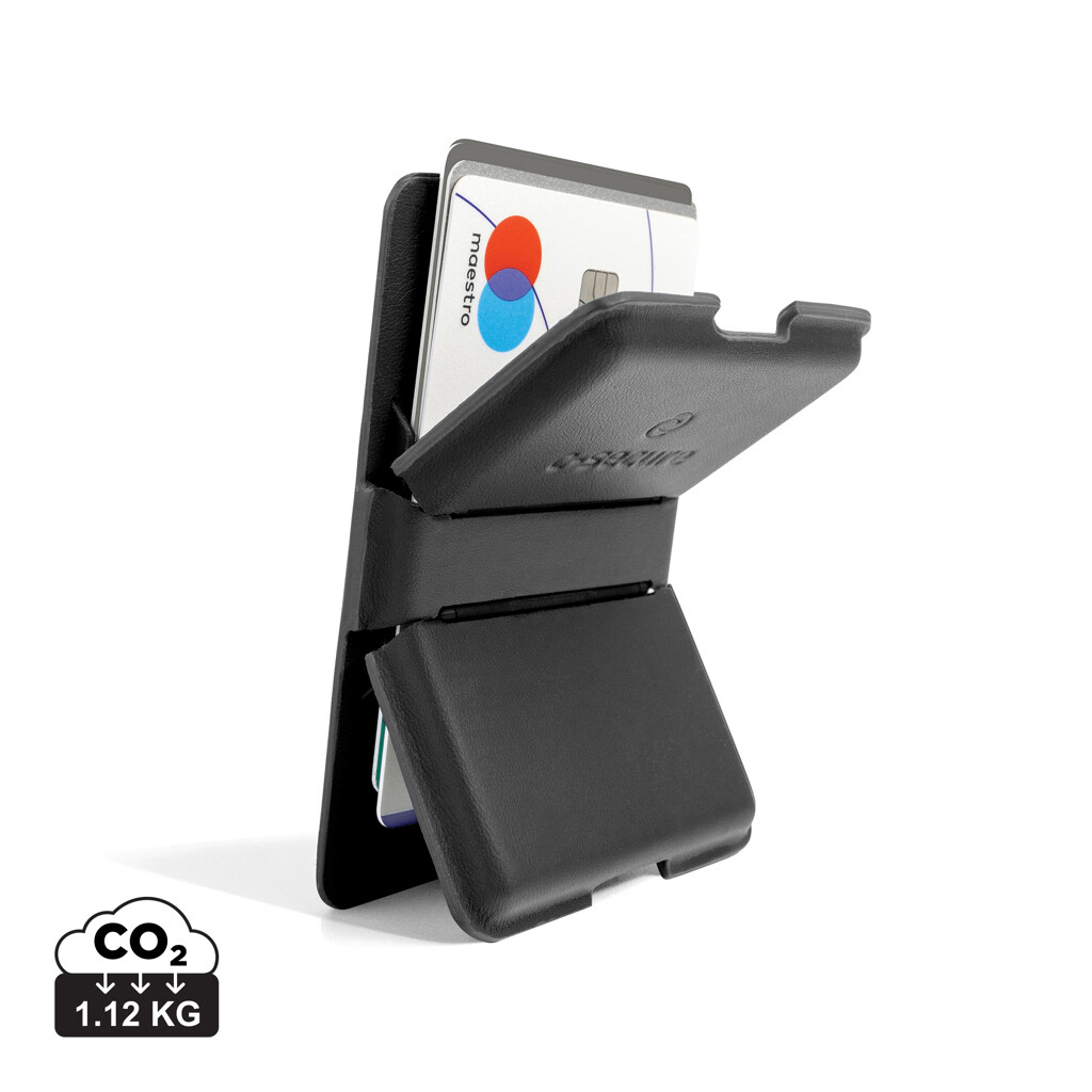 Peňaženka C-secure MagSafe ponúka elegantné a praktické riešenie na bezpečné uloženie vašich kariet, ktoré budete mať vždy poruke. Vďaka integrovanej RFID ochrane spoľahlivo chráni až štyri platobné karty pred neoprávneným skenovaním, zatiaľ čo silné zabudované magnety zaisťujú pevné prichytenie k vášmu iPhonu – v prípade použitia puzdra kompatibilného s MagSafe, ale i bez neho. Peňaženku jednoducho odpojíte vždy, keď potrebujete bezdrôtovo nabiť telefón alebo zmeniť vzhľad. Je vyrobená z kvalitnej PU kože a spája každodenné pohodlie s modernou ochranou. Potrebujete vykonať viac úloh naraz? Peňaženka slúži aj ako stojan, takže si môžete pohodlne postaviť telefón na sledovanie videí, pracovné hovory alebo streamovanie bez použitia rúk.