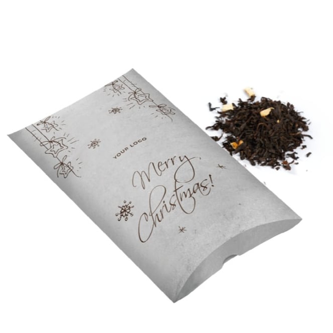Čaj v papierovom vankúšiku 30g. Možnosť výberu v bežných základných príchutiach alebo vo vianočnej príchuti, ktorá navodí tú správnu atmosféru Vianoc. Tento produkt si môžete objednať v kraftovom papieri. Štandardne je obal vyrobený z bieleho papiera.