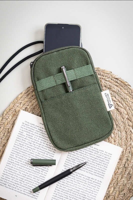 Crossbody taška na mobilný telefón z recyklovaného plátna s hlavnou priehradkou na zips, predným vreckom a nastaviteľnou šnúrkou z polyesteru RPET. Materiál: 70% recyklovaná bavlna a 30% polyester RPET. S výrazným štítkom z recyklovanej bavlny. New. Go Green. Nosnosť tašky: 1 kg. Objem tašky: 2 l
