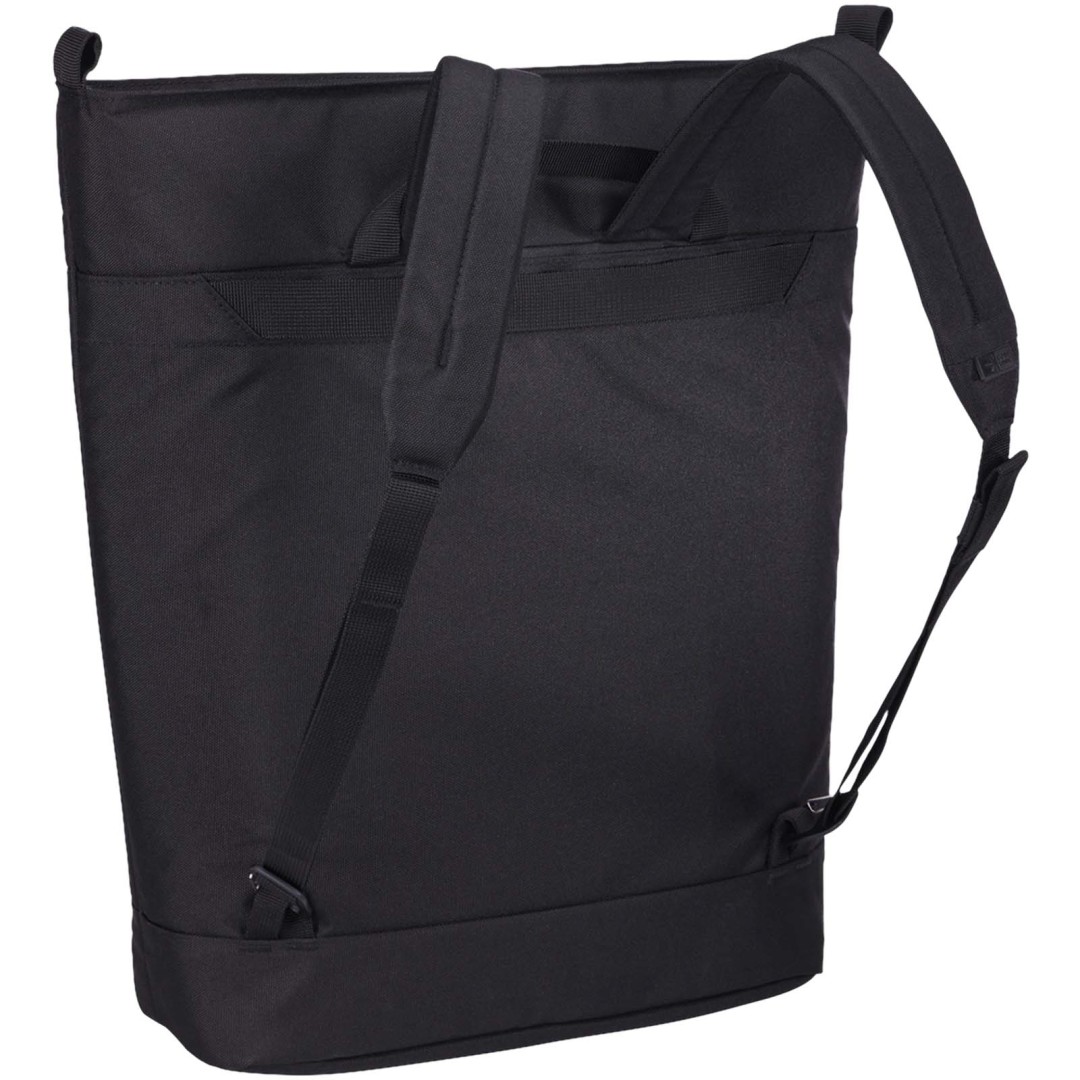 Premeniteľná nákupná taška Case Logic Invigo má vkusný a elegantný dizajn s premyslenými organizačnými funkciami. Je vyrobená zo 100% recyklovaného polyesteru 600D na vonkajšej strane a podšívky z polyesteru 150D. Polstrovaná priehradka chráni 15,6'' notebook, do puzdra na tablet sa zmestí 12,9'' tablet. Tašku môžete použiť ako nákupnú tašku. Pokiaľ hlavný ramenný popruh oddelíte, môžete ho použiť ako batoh. Pri použití v režime nákupnej tašky sa popruhy batohu ukladajú do malého vyhradeného vrecka na zadnom paneli. Vrecko na zips na prednom paneli umožňuje ľahké uloženie drobného príslušenstva a rýchly prístup k potrebným veciam. V hlavnom oddiele je vyhradené vrecko na fľašu s vodou, na zadnom paneli je veľké vrecko na uloženie ďalších vecí. Pre cestovanie bez námahy je taška vybavená prevliekacím popruhom na pripevnenie ku kolieskovej batožine.