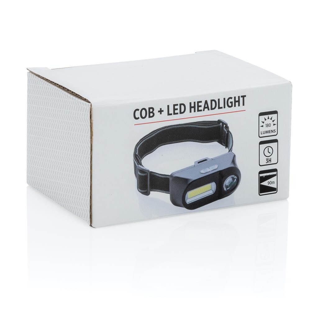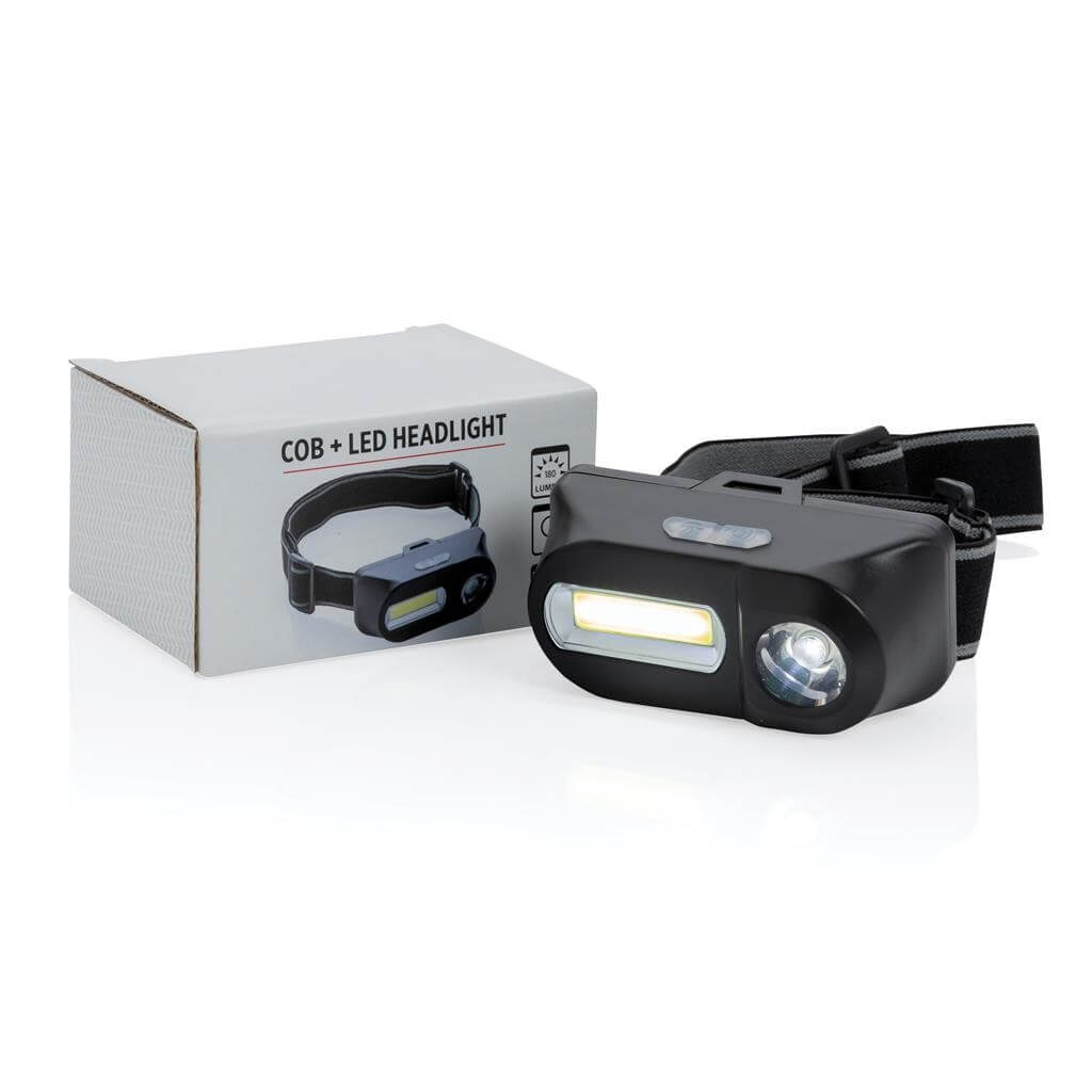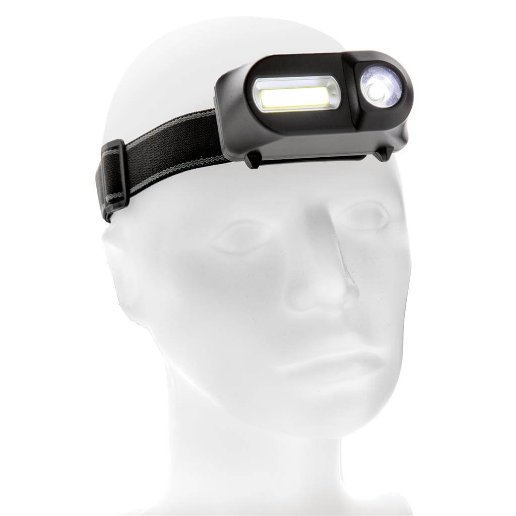 Duálna čelovka s LED aj COB svetlom. COB svetlo (180 lumenov) je ideálna na osvetlenie neďalekých priestorov. LED svetlo (90 lumenov) je potom ideálna na dlhšiu vzdialenosť (až 80 m). Obe svetlá majú 3 režimy: silné, slabé, blikajúce svetlo. Prispôsobiteľná elastická (42 cm) čelenka pre nosenie na hlave alebo na helme. Výdrž až 3 hodiny. Vrátane batérií pre priame použitie. Vyrobené z ABS. 3 batérií typu AAA Súčasti balením.