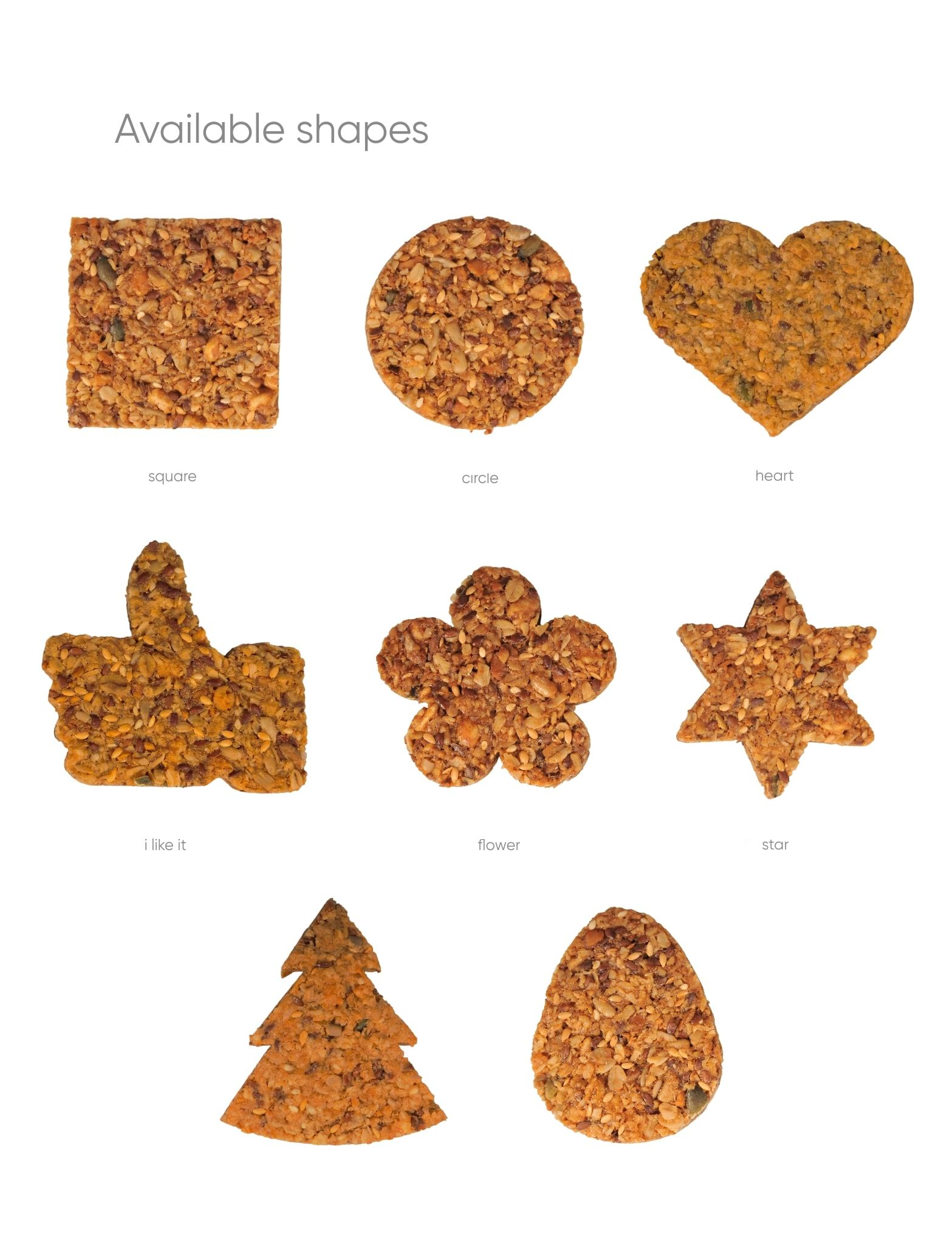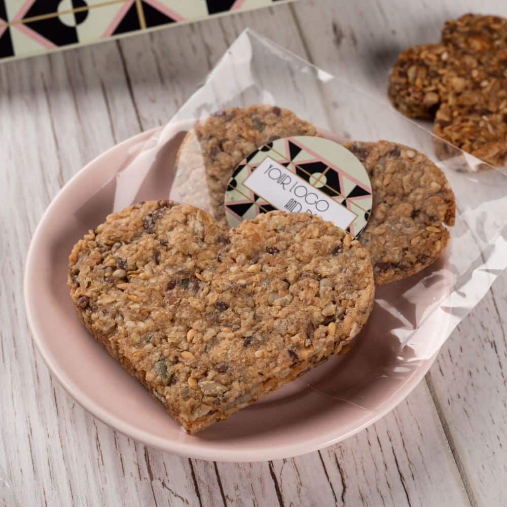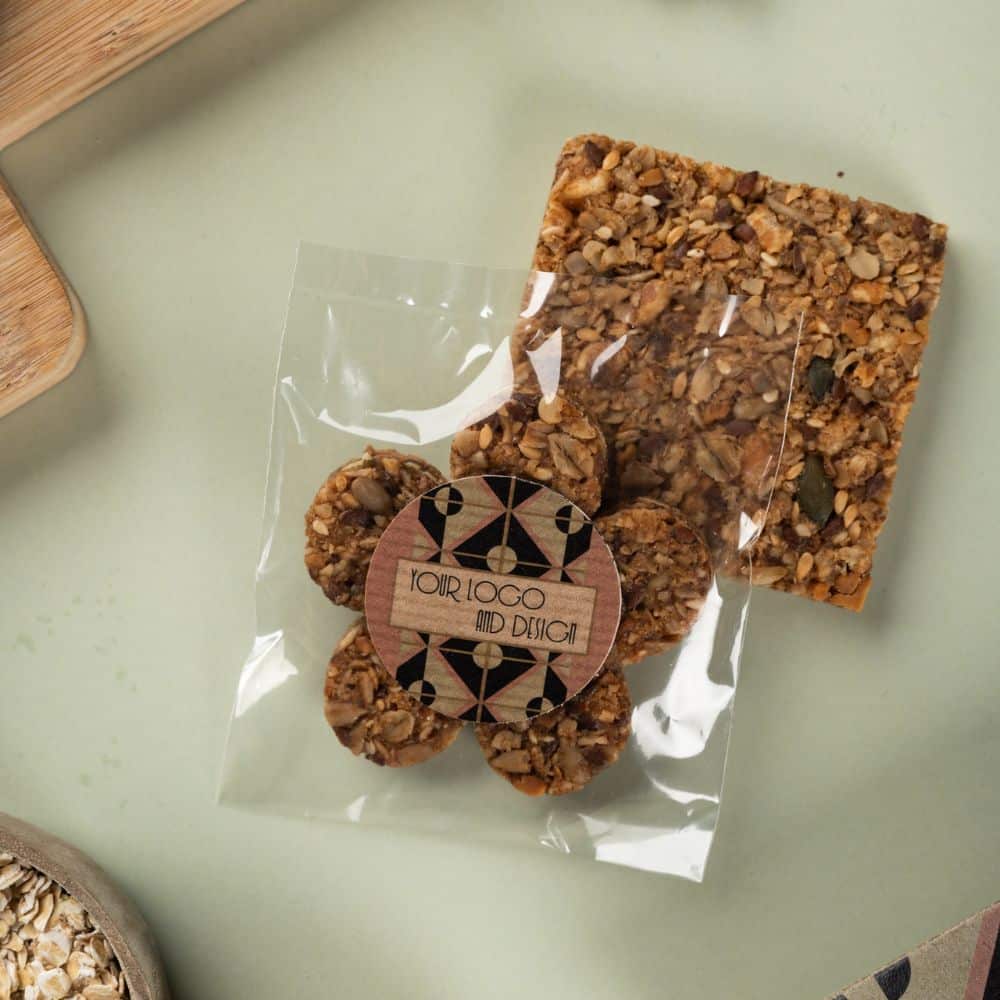 Zaujmite hneď na prvú dobrú a využite svoj marketing podobe cereálnych koláčikov v rôznych tvaroch. Balené sú v priehľadnej fólii. Potlač sa robí na nálepku.