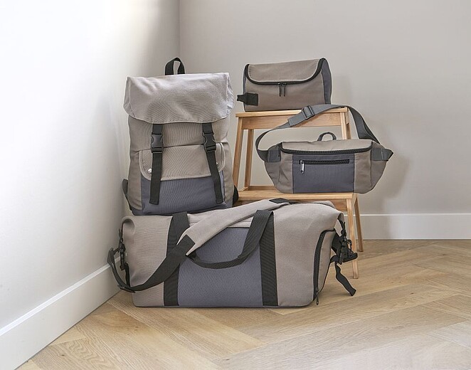 Polyesterová taška s PU podšívkou a dnom z PE peny (3 mm). Veľké vrecko na zips na hornej strane a vrecko na zips na prednej strane. Bočná priehradka na obuv. Krátke popruhy a veľký nastaviteľný polstrovaný ramenný popruh. Rozmery 47,6 x 26 x 3 175 mm