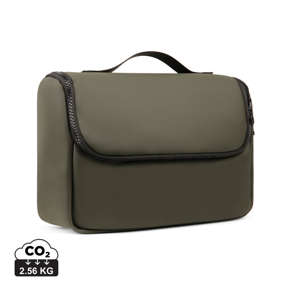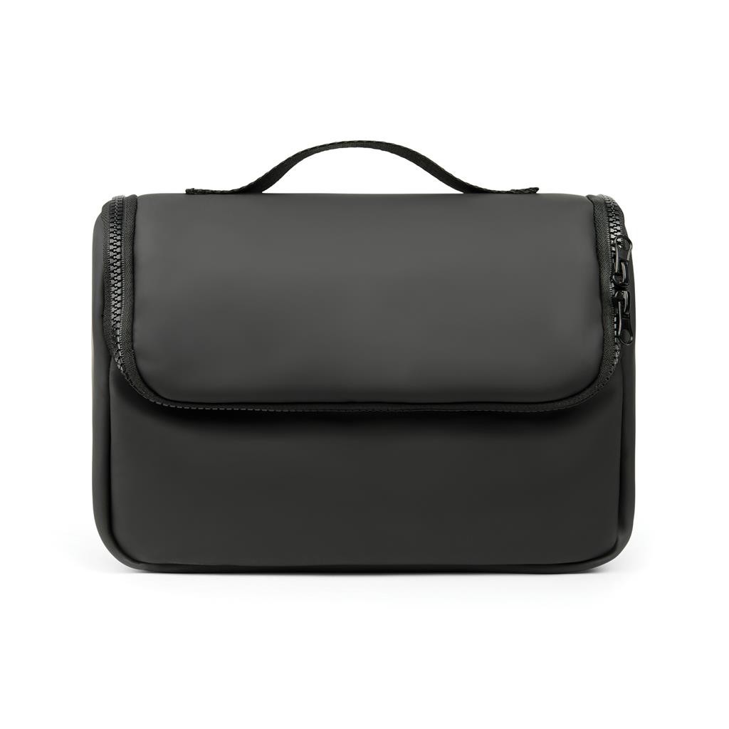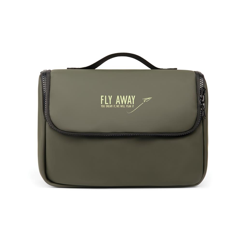 Cestovná toaletná taška vyrobená z vodou repelentnej nubukovej PU kože, ktorá je zároveň štýlová aj praktická. Materiál je veľmi ľahko umývateľný. Vnútorná časť je prispôsobená pre maximálnu organizáciu všetkých toaletných potrieb. Disponuje niekoľkými vreckami a háčikom na zavesenie.