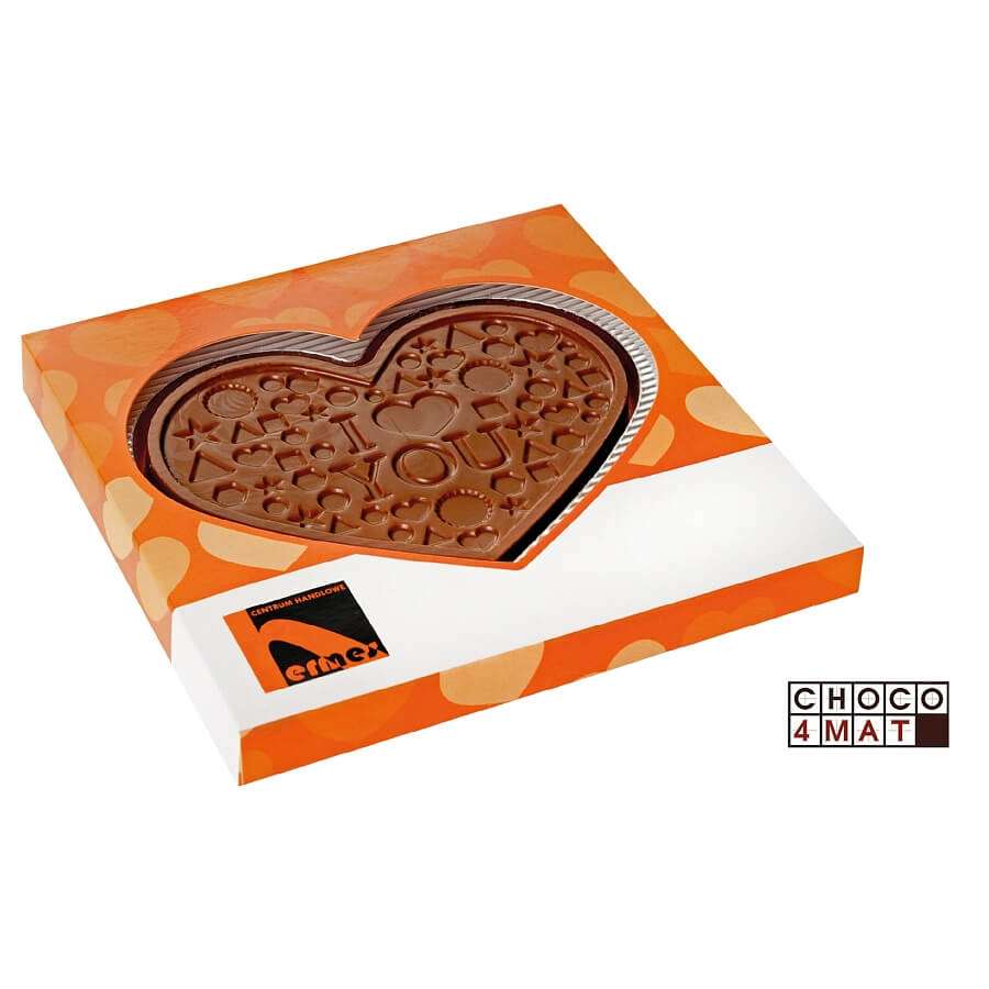 Srdce v krabičke s priehľadným okienkom, mliečna, biela, horká čokoláda. doba dodania: 2-3 týždne od schválenia náhľadu trvanlivosť: 6 mesiacov možnosti tlače: krabička s vlastnou grafikou.