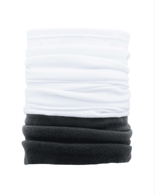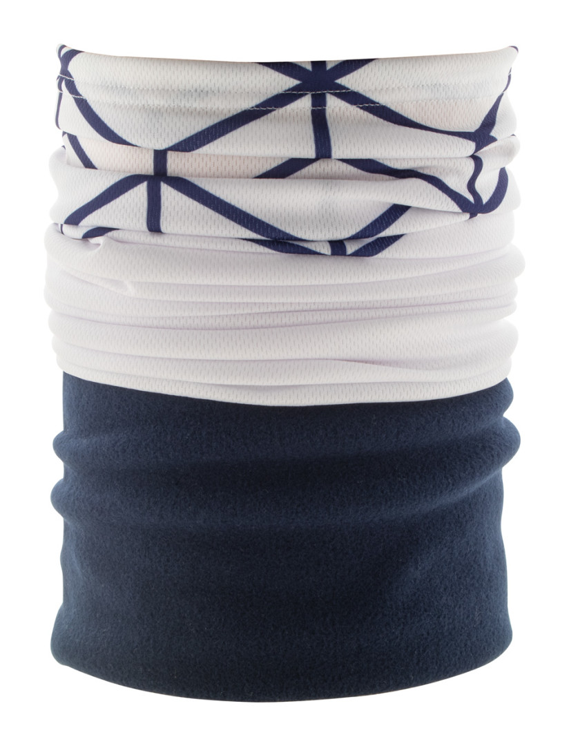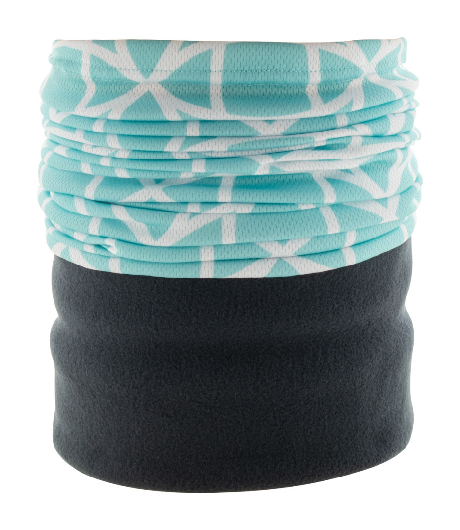 Viacúčelová šatka, vyrobená na zákazku z priedušného a rýchloschnúceho polyesteru s farebným zateplením na krku z polar fleecu. Cena zahŕňa celoplošnú sublimačnú tlačenú grafiku na polyesterovej časti, nezahŕňa tlačovú prípravu. Vyrobené zo 100% polyesteru (135 g / m²) a polar fleecu (160 g / m²). Min. mn .: 100 ks.