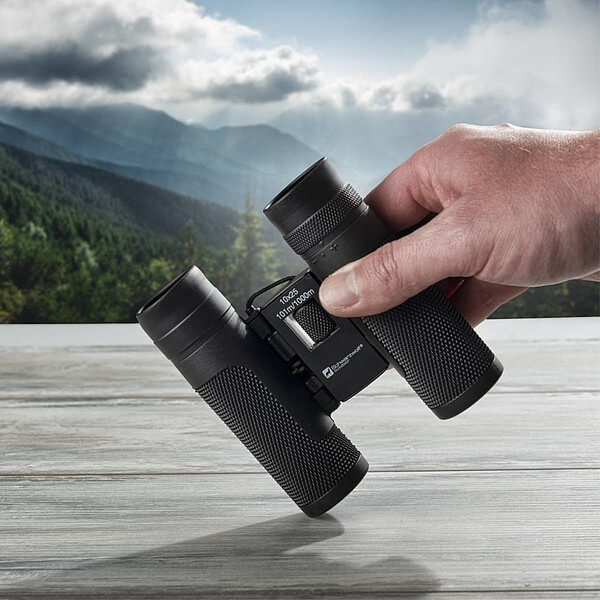 Ďalekohľad značky Schwarzwolf s optikou 10x25, zorné pole v 1000m: 101, zorný uhol 5,8 °, priemer výstupnej pupily 11mm, najkratšia ostriaca vzdialenosť 3 m. Ďalekohľad je balený v neoprénovom puzdre so šnúrkou na krk a v krabičke Schwarzwolf.