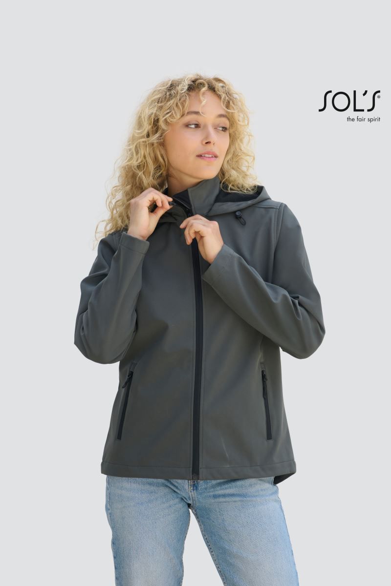 2-vrstvový softshellový materiál, vodeodpudivý, kapucňa so sťahovacou šnúrkou, nastaviteľný pás s elastickou šnúrkou, nylonové zipsy, 2 bočné vrecká so zipsom, ergonomicky predĺžená zadná časť, štítok TearAway, prateľné na 40 °, nemožno sušiť v sušičke.