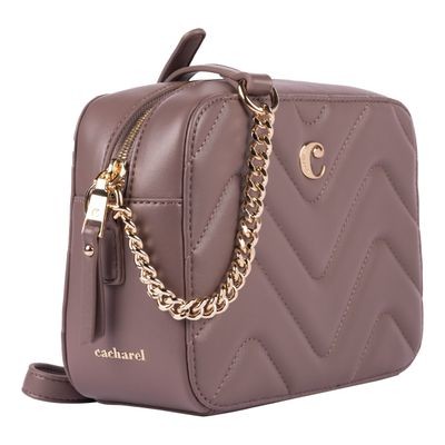 Crossbody kabelka „Odeon“ je elegantná a decentná, s prešívaným vzorom na krásnej, jemne textúrovanej vegánskej koži (PU). Podpisový štítok je mierne nadrozmerný a klenutá verzia ikonického loga „C“, podpísaná rytinou Cacharel. Sťahovák zipsu je tiež podpísaný ikonickým logom „C“ a je vyrobený z krásneho pozláteného kovu zmiešaného s vegánskou kožou, čo dodáva celému produktu krásny ženský nádych. Taška, ktorá je kompaktná, ale praktická, s vnútorným oddelením na zips, sa bude perfektne nosiť všade.