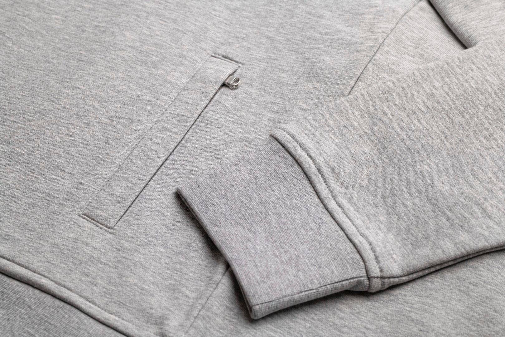Kruhovo dopriadaná česaná bavlna / recyklovaný polyester (froté) | Moderné regular fit | Ochrana proti žmolkovaniu a zrazeniu, stálofarebné | 2 bočné vrecká na zips | Šev, okraje vreciek a manžety sú vyrobené z vysoko kvalitného 1 x 1 rebrovaného úpletu | Elegantný a napriek tomu robustný vzhľad | Priemyselné pranie | Bez štítkov