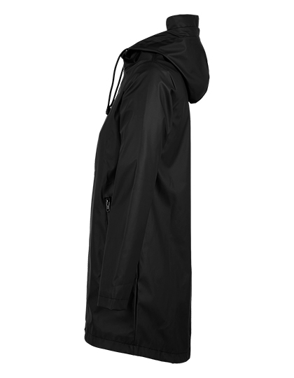 Polyester 220, PU poťah, polyesterová podšívka taft 210T, podšívka kapucňa TC | Vodotesná 5 000 mm | Zapínanie na vodeodolný zips | Kapucňa so sťahovacími šnúrkami | 2 vodeodolné bočné vrecká na zips | Predĺžená zadná časť | Dvojito zvárané švy | Bez štítku.