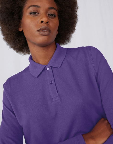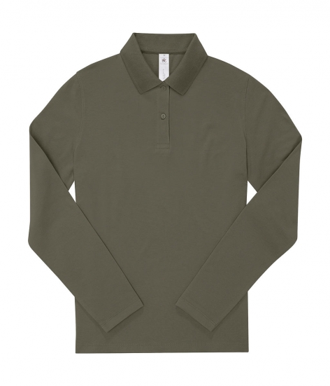 180 g/m², 100% bavlna, predzrážaná a prstencová (Fine Piqué), Sport Grey: 90% bavlna, 10% viskóza, jemná na dotyk, spevňujúca páska na ramenách, dlhé rukávy, rebrovaný golier a manžety rukávov, 2 gombíková plaketa, gombíky v odpovedajúcej farbe, bočné švy, rovný povrch pre jasné a ostré výsledky potlače, tvarovaný strih