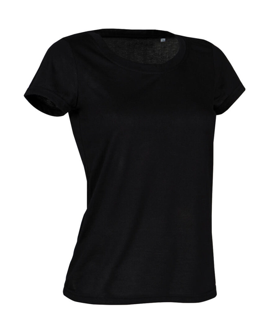 ·jemná, hladká tkanina, ktorá na dotyk pôsobí ako bavlna ·ozdobné ploché švy na ramenách ·vzadu malé, reflexné logo ACTIVE-DRY° ·bočné švy ·klasický strih