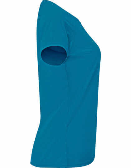 Dámske funkčné tričko s mriežkovaným úpletom a krátkymi raglánovými rukávmi | Okrúhly výstrih s páskou za krkom v rovnakej farbe | Overlockové švy v zladenej farbe na prieramkoch a vsadkách rukávov | Control Dry | Odtrhávací štítok | Funkčná tkanina