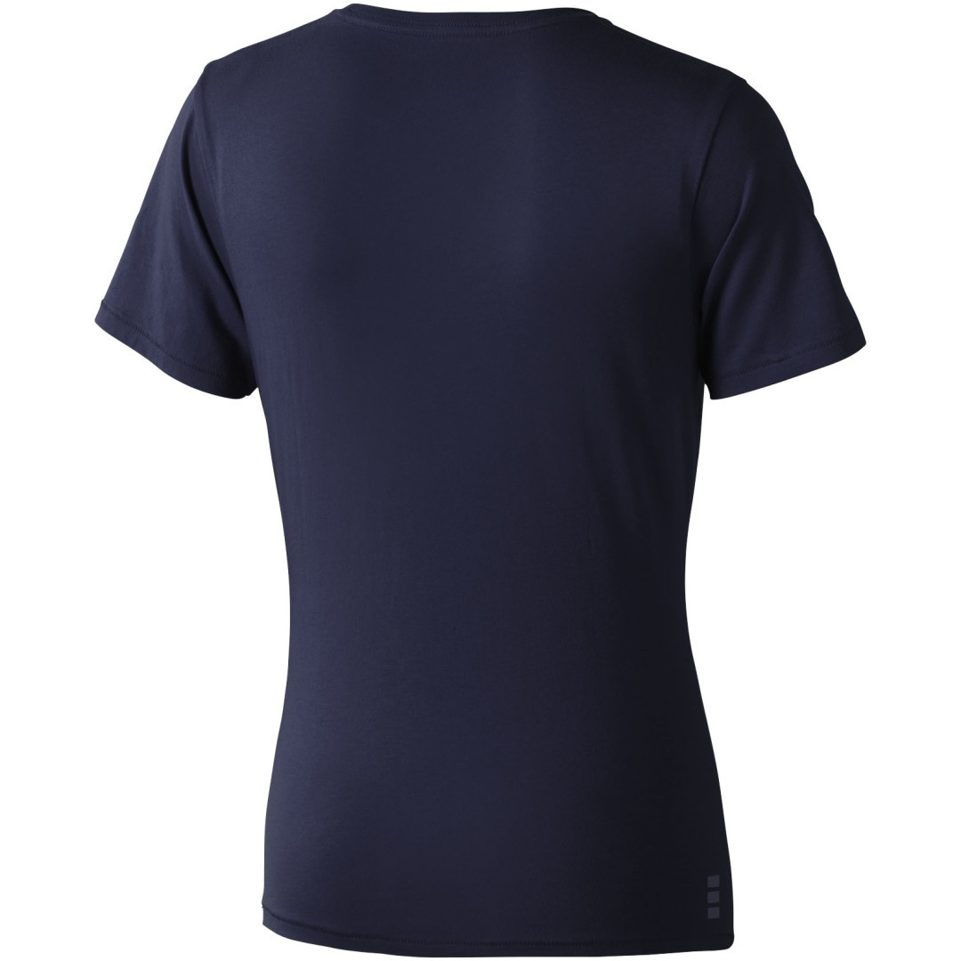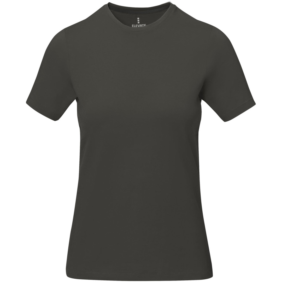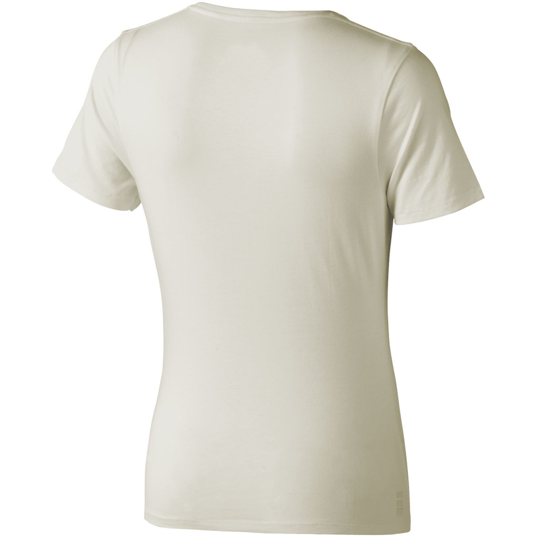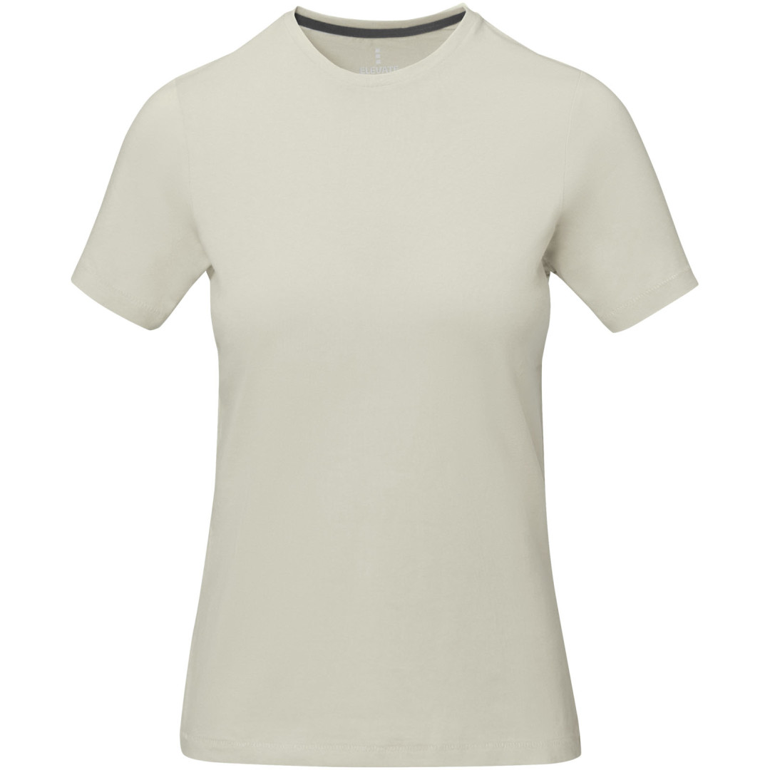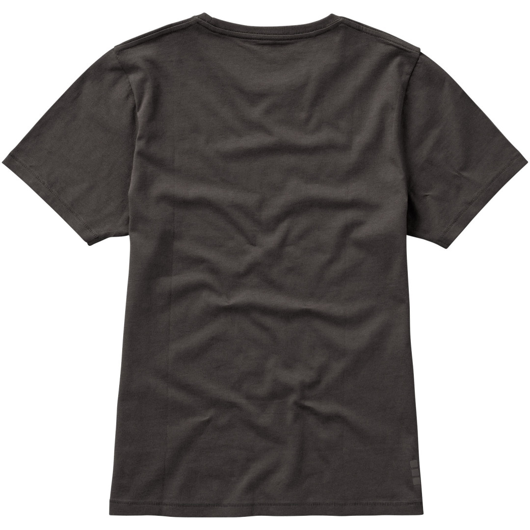 Dámske tričko Nanaimo. 1x1 rebrový úplet výstrihu bez stehovania na leme. Bočné švy. Retiazkový steh. Pred zrážané. Potlač loga na chrbte. Jednoduché pre dekoráciu, jemný povrch pre potlač. Mäkký pocit pre pokožku. Silueta klasického krátkeho rukávu. Detaily s vybraným stehom. Jednolícny džersejový úplet, 100% česaná bavlna z prstencovej priadze. 160GSM.