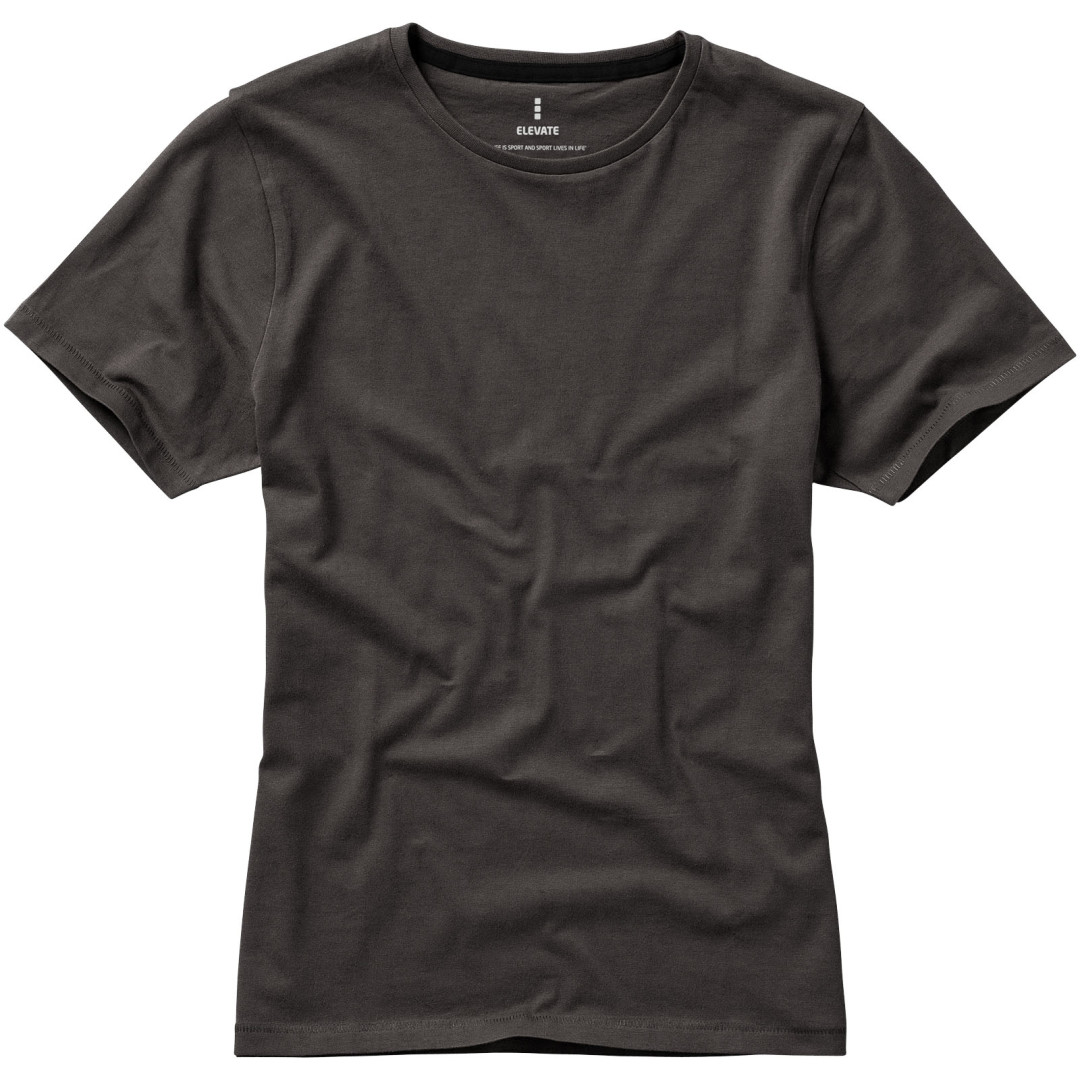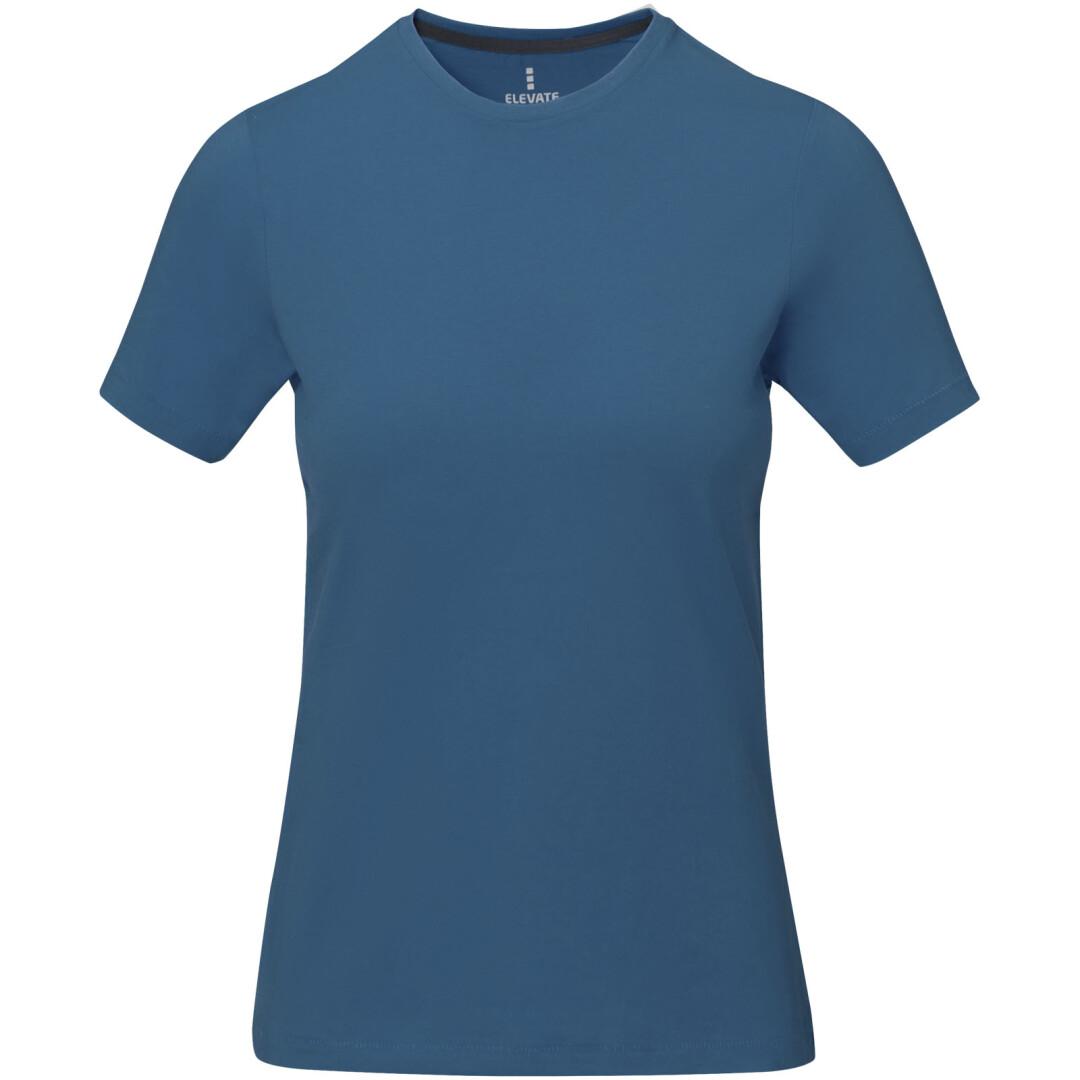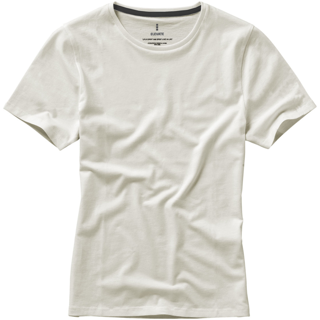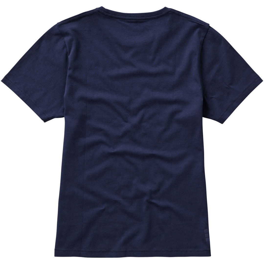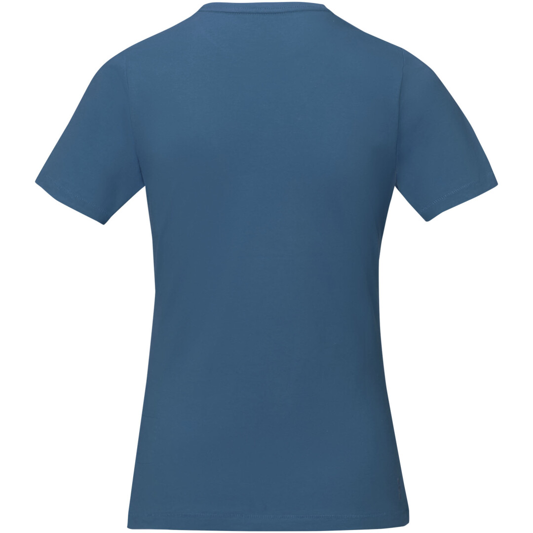 Dámske tričko Nanaimo. 1x1 rebrový úplet výstrihu bez stehovania na leme. Bočné švy. Retiazkový steh. Pred zrážané. Potlač loga na chrbte. Jednoduché pre dekoráciu, jemný povrch pre potlač. Mäkký pocit pre pokožku. Silueta klasického krátkeho rukávu. Detaily s vybraným stehom. Jednolícny džersejový úplet, 100% česaná bavlna z prstencovej priadze. 160GSM.