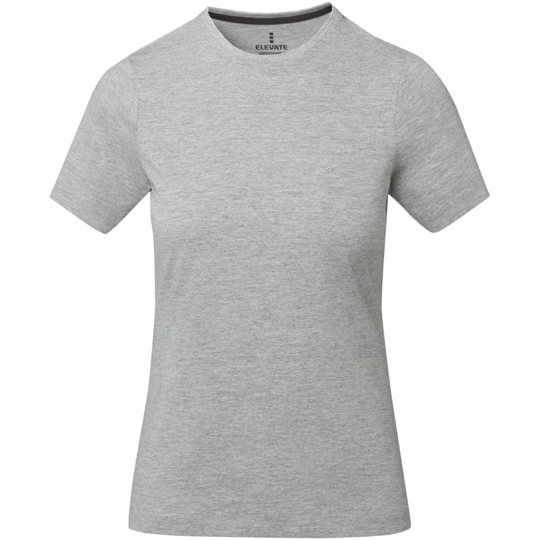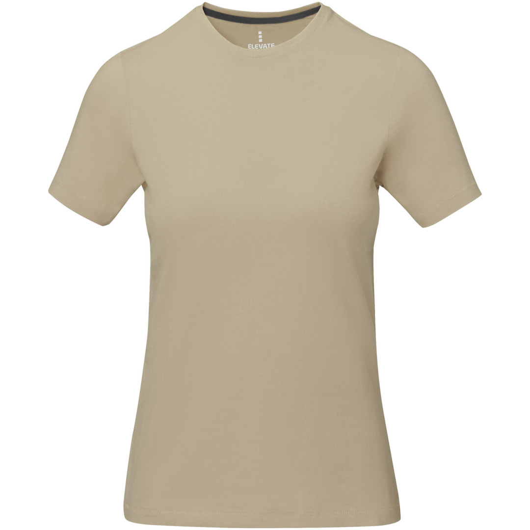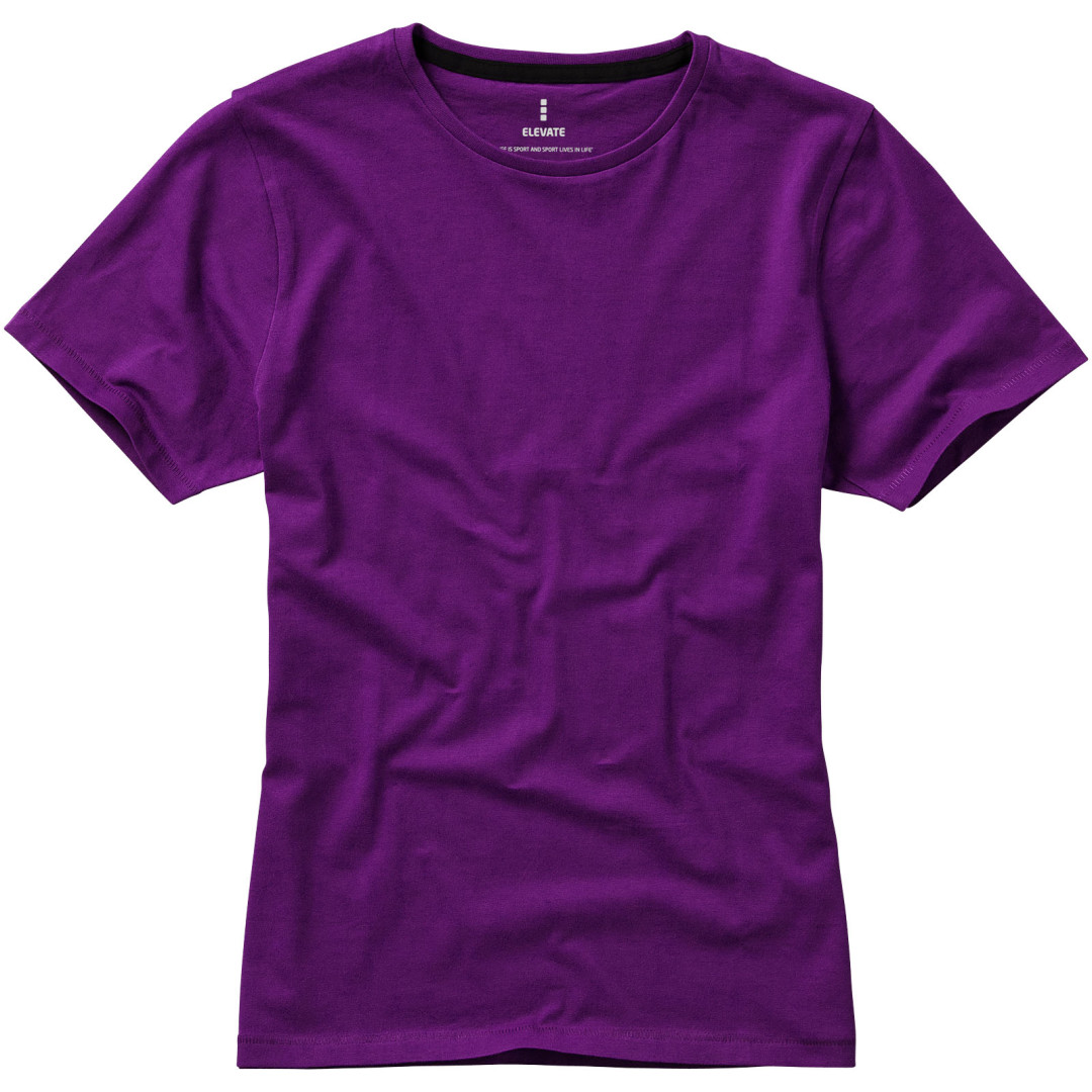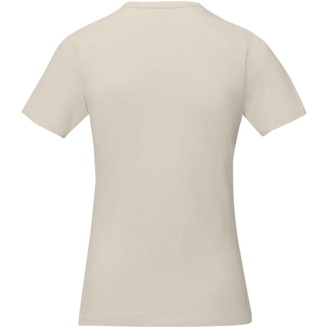 Dámske tričko Nanaimo. 1x1 rebrový úplet výstrihu bez stehovania na leme. Bočné švy. Retiazkový steh. Pred zrážané. Potlač loga na chrbte. Jednoduché pre dekoráciu, jemný povrch pre potlač. Mäkký pocit pre pokožku. Silueta klasického krátkeho rukávu. Detaily s vybraným stehom. Jednolícny džersejový úplet, 100% česaná bavlna z prstencovej priadze. 160GSM.