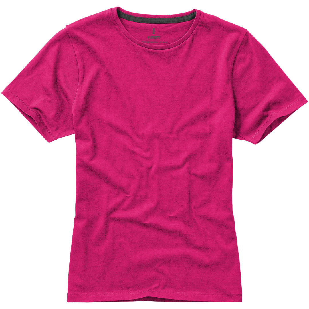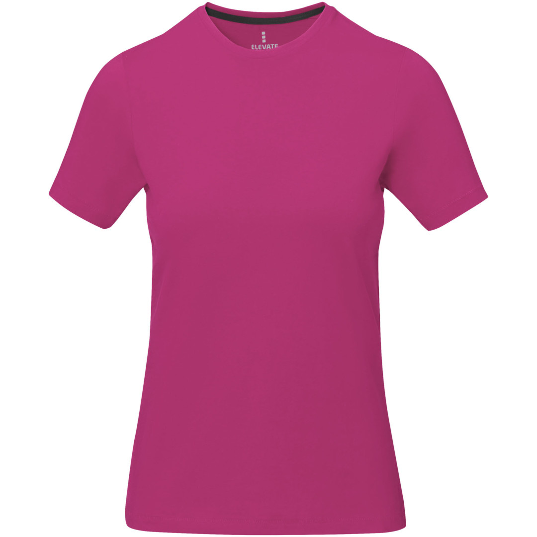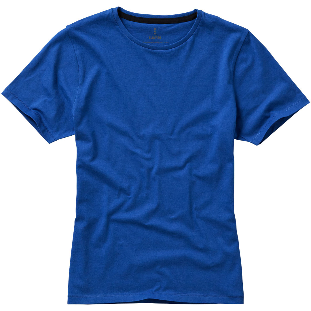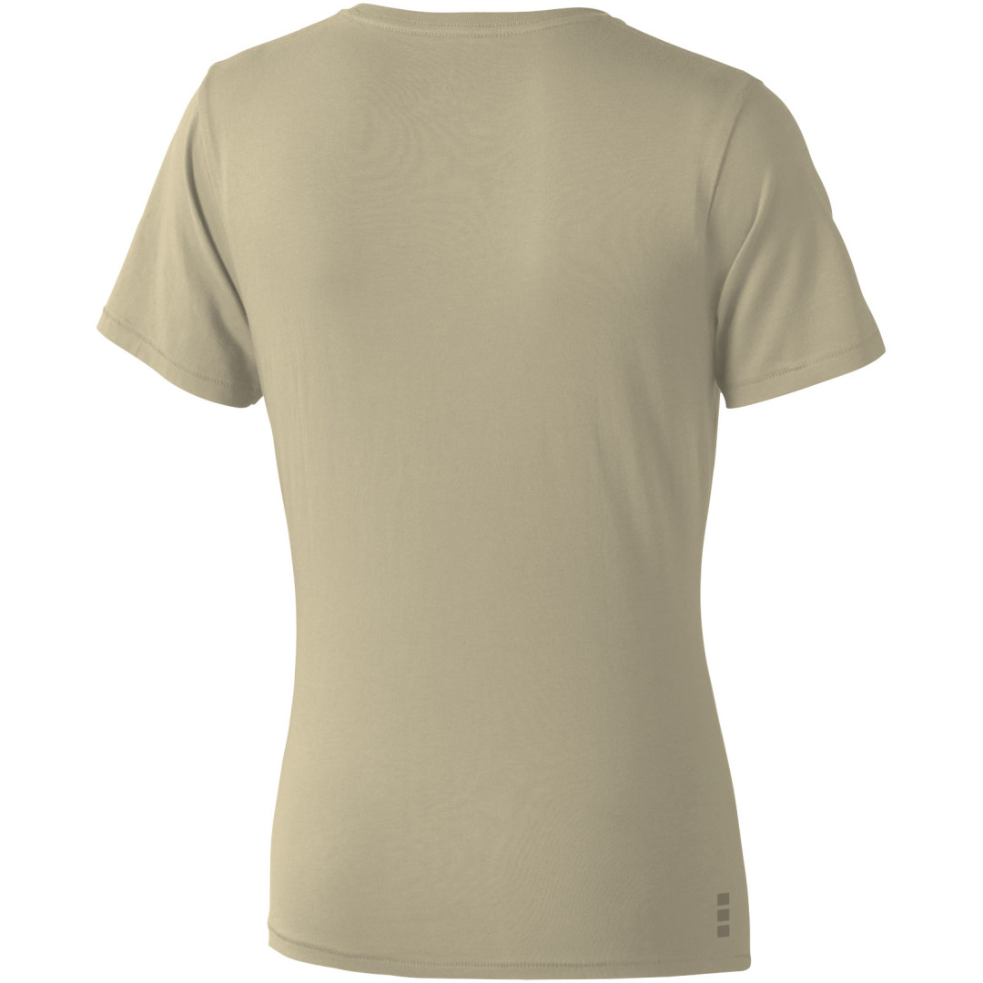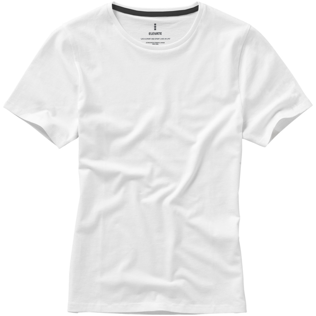 Dámske tričko Nanaimo. 1x1 rebrový úplet výstrihu bez stehovania na leme. Bočné švy. Retiazkový steh. Pred zrážané. Potlač loga na chrbte. Jednoduché pre dekoráciu, jemný povrch pre potlač. Mäkký pocit pre pokožku. Silueta klasického krátkeho rukávu. Detaily s vybraným stehom. Jednolícny džersejový úplet, 100% česaná bavlna z prstencovej priadze. 160GSM.