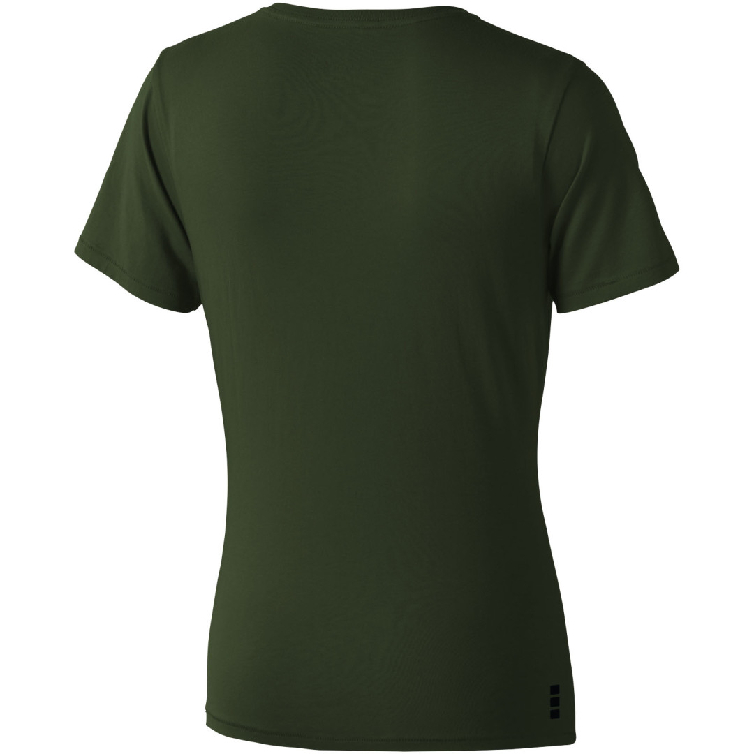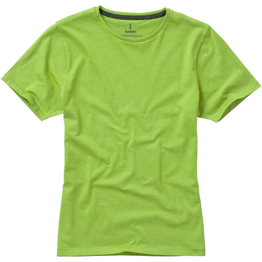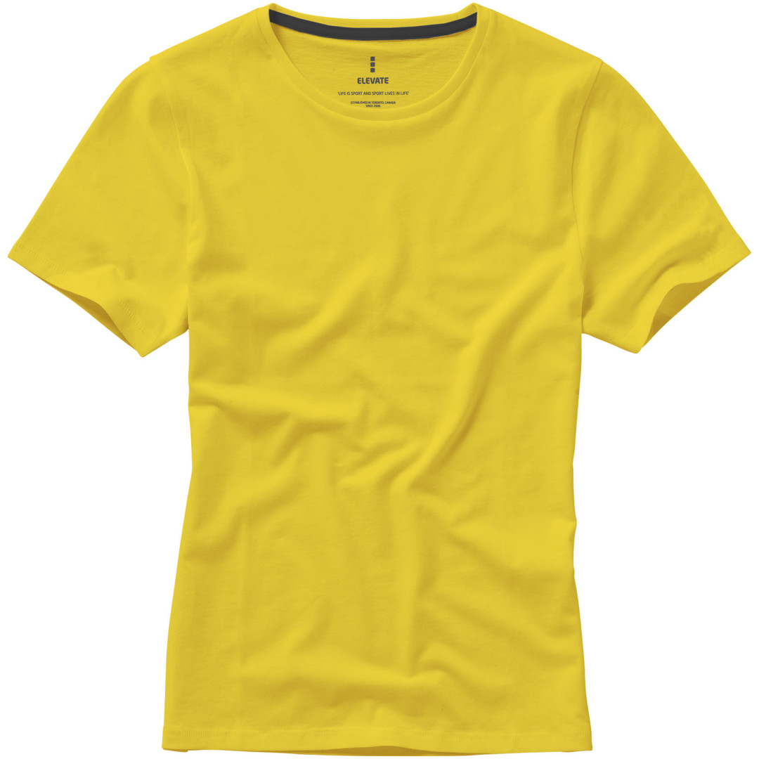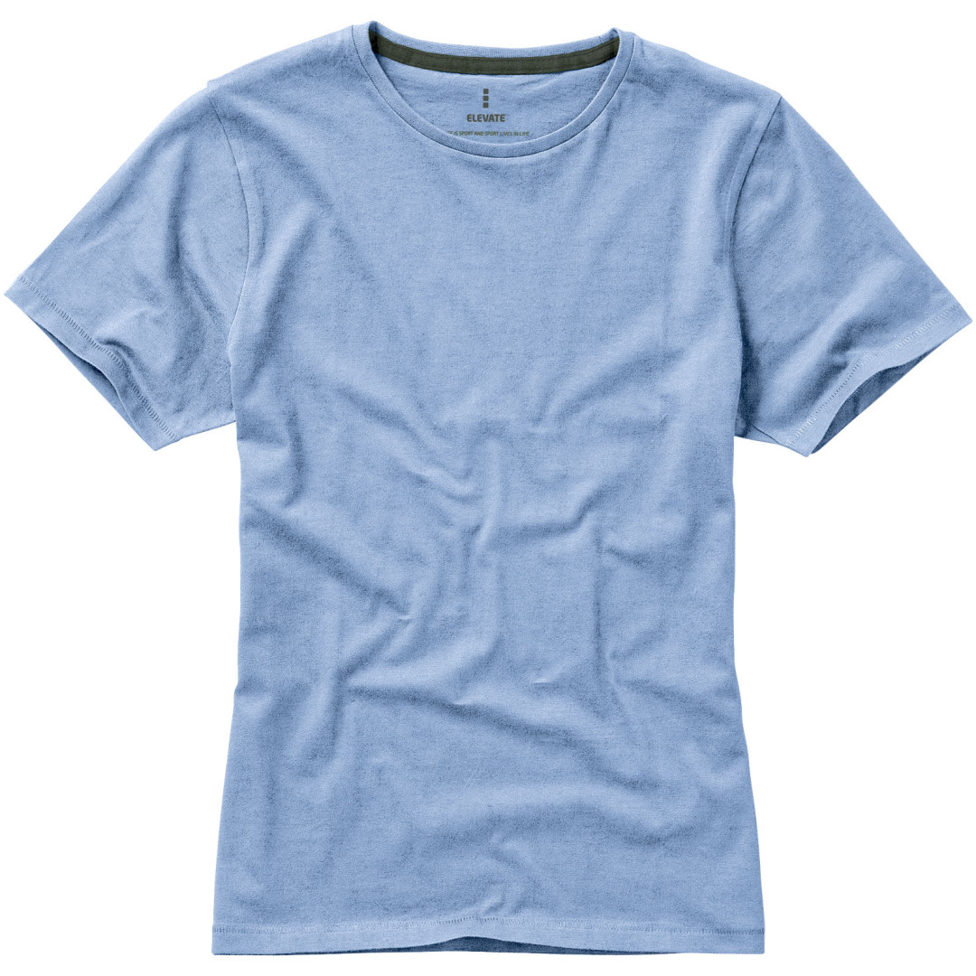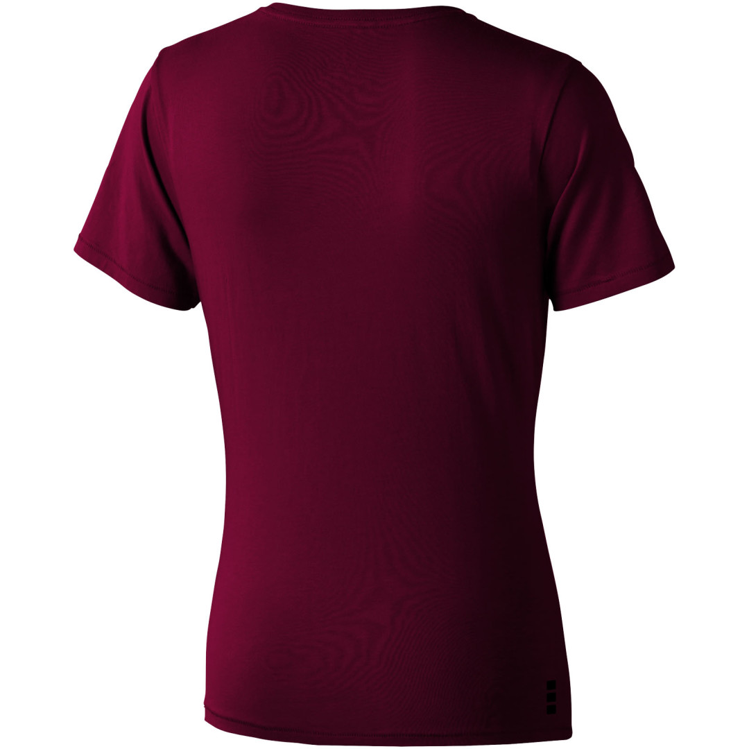 Dámske tričko Nanaimo. 1x1 rebrový úplet výstrihu bez stehovania na leme. Bočné švy. Retiazkový steh. Pred zrážané. Potlač loga na chrbte. Jednoduché pre dekoráciu, jemný povrch pre potlač. Mäkký pocit pre pokožku. Silueta klasického krátkeho rukávu. Detaily s vybraným stehom. Jednolícny džersejový úplet, 100% česaná bavlna z prstencovej priadze. 160GSM.