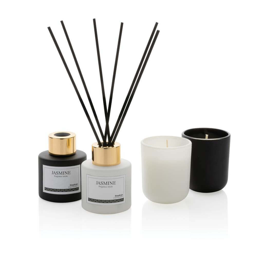 Darčeková sada vonných tyčiniek a sviečky so sójovým voskom. Príjemná jazmínová vôňa na navodenie uvoľnenej atmosféry a pocit relaxu. Doba horenia sviečky: 10 hodín, čistá váha 55 g. Balené v kraftovej darčekovej krabičke.