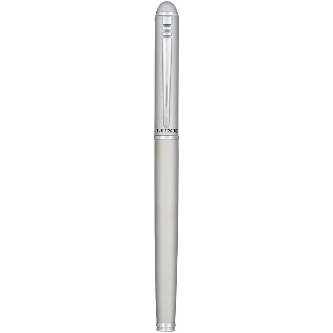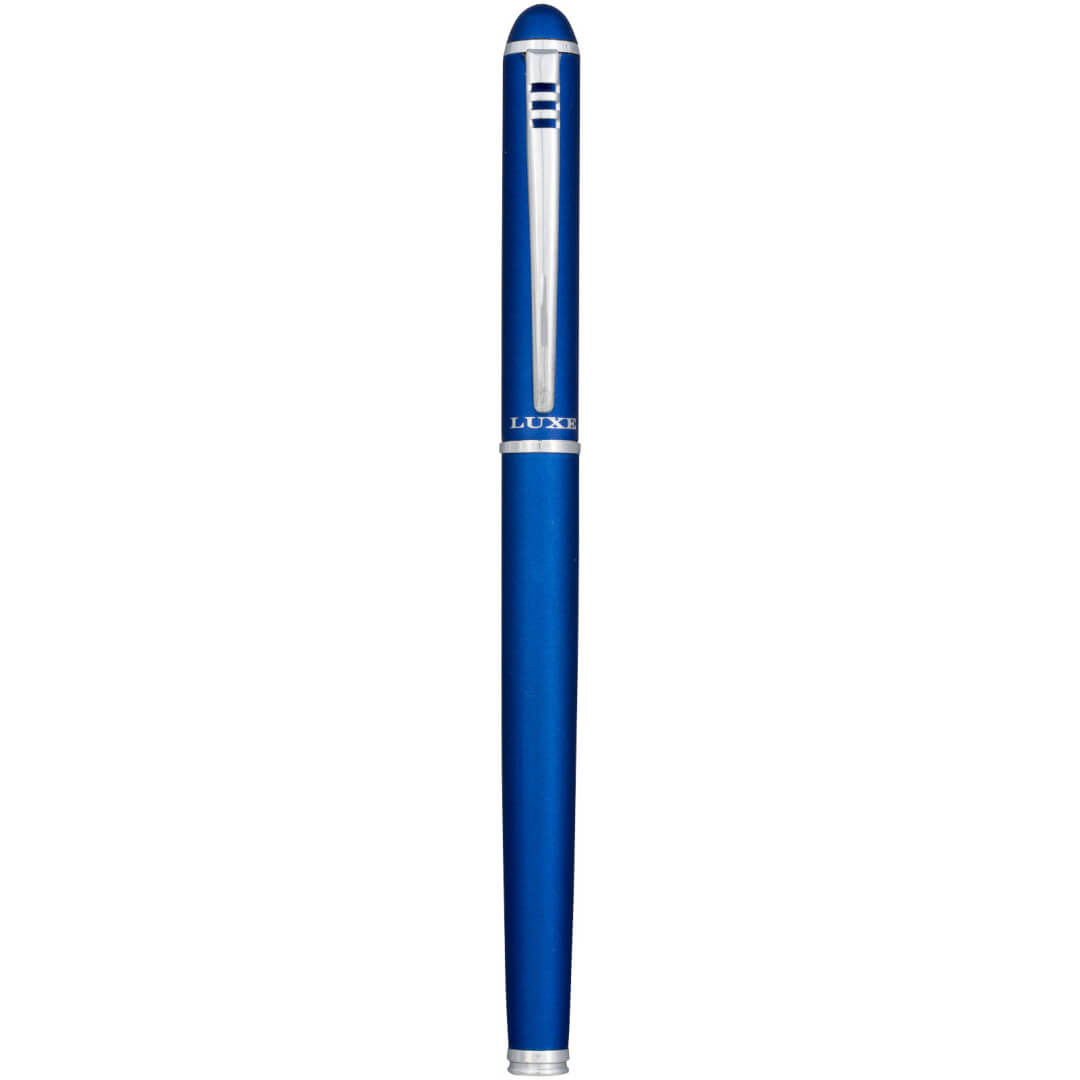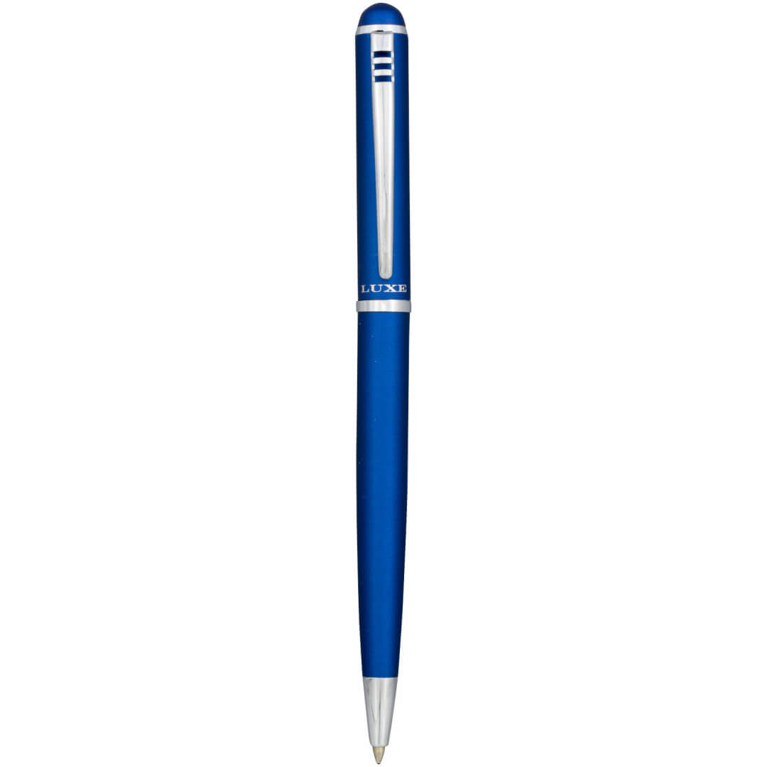 Súprava exkluzívneho dizajnového guľôčkového pera s otáčacím mechanizmom a keramického pera s viečkom. K dostaniu v lesklej čiernej, matnej striebornej a matnej modrej. Zabalené v darčekovej krabičke LUXE (17x5,5x3 cm). Kov.