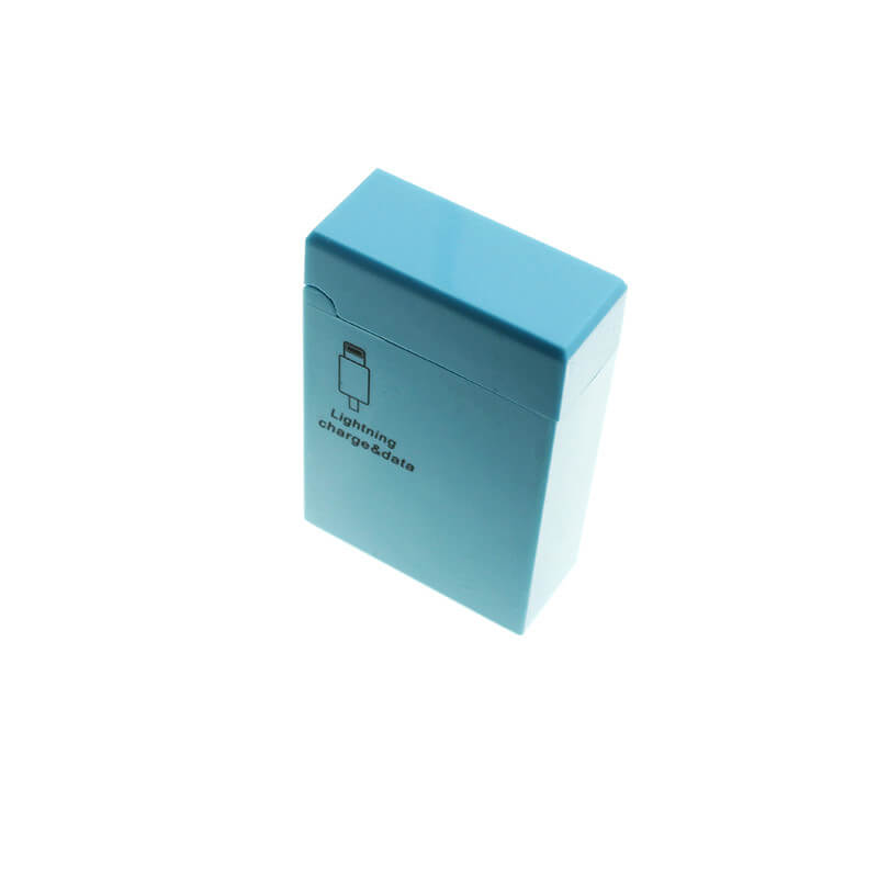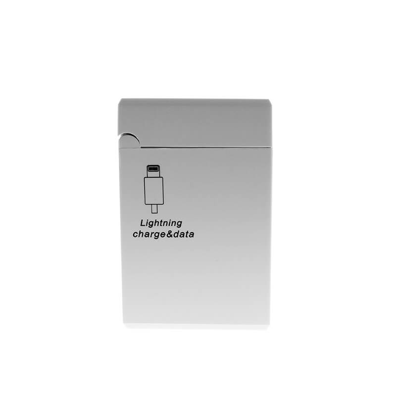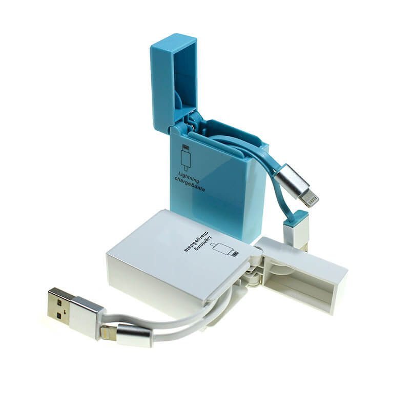 Dátový a napájací kábel USB na Lightning konektor (pre iPhone 5, 6, 7; iPad 2, Air, Air 2; iPad Pro; iPad mini) v praktickej krabičke s navijakom v Zippo štýle. 5 základných farieb, možnosť potlače.