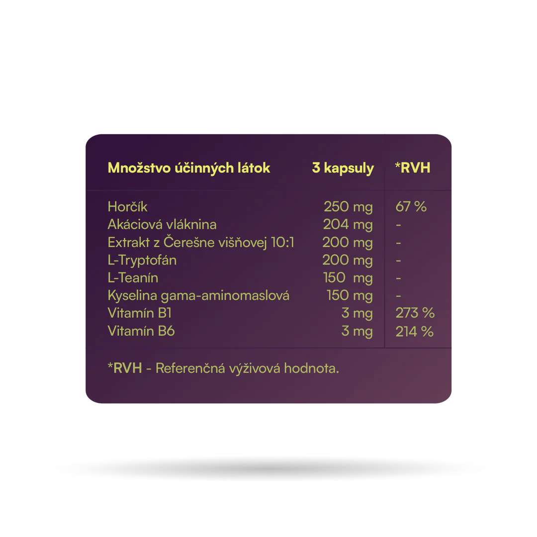Deep Sleep Magnesium obsahuje tri prémiové formy horčíka – citrát, bisglycinát a taurát – ktoré sa výborne vstrebávajú a účinne pôsobia na telo aj myseľ. Podporuje kvalitný, neprerušovaný spánok, zmierňuje napätie, kŕče a stres. Pomáha uvoľniť svaly aj nervový systém pred spaním. 100% prírodné fialové zafarbenie kapsule vďaka koncentrátu z mrkvy. Balenie: 90 kapsúl (1 mesiac)