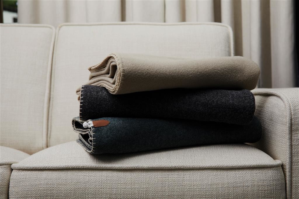 Krásny melanžový vlnený pléd, ktorý nebudete chcieť pustiť z ruky, či už pri posedení venku počas krásneho letného večera, alebo doma na gauči. Z 30% je vyrobená z recyklovaných polyesterových vlákien. Pomocou nenápadného knoflíka na dlhšej strane ju môžete ľahko premeniť na praktické pončo. Označenie OEKO-TEX Standard 100 znamená, že materiál plédu spĺňa kritériá pre bezpečnosť výrobku.