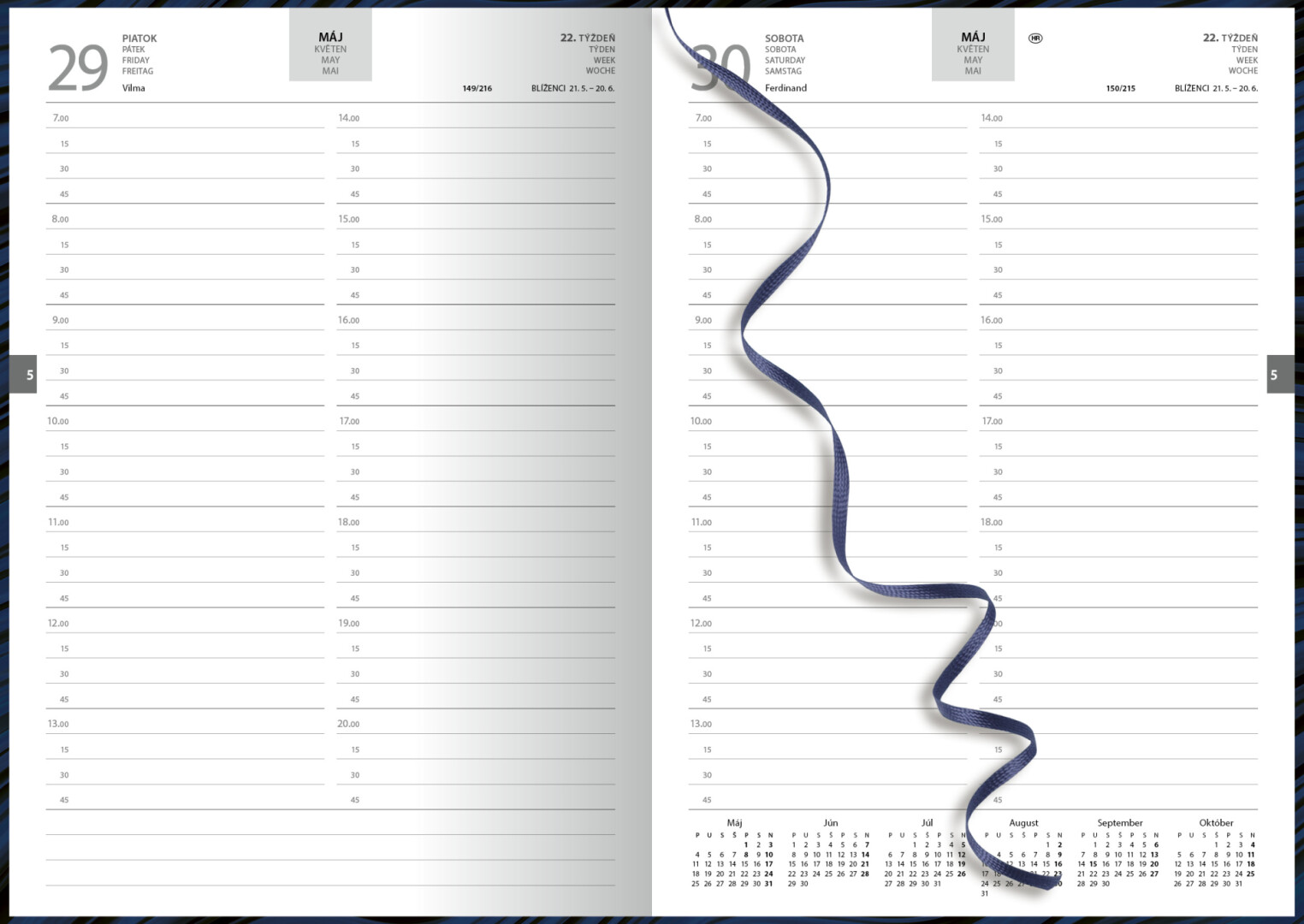 Najväčší denný diár, jediný svojho druhu, prináša prehľadnosť a veľa priestoru pre zapisovanie na každý deň. Diár je v pevnej väzbe so slovenským kalendáriom a s pútkom na pero. Printové dosky chránené laminom zabezpečia kvalitu diára na celý rok.