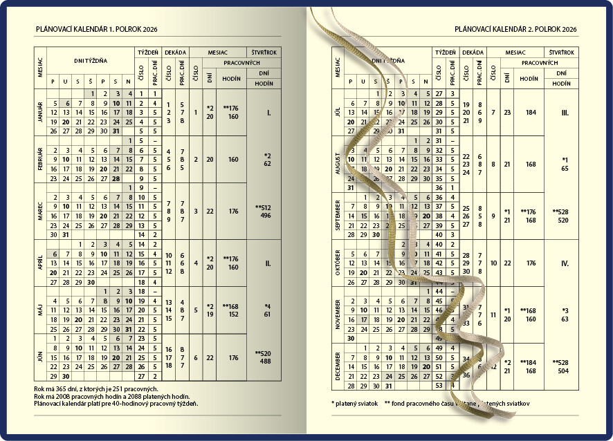 Obľúbený denný diár s prehľadným kalendáriom na každý deň. Diár je v pevnej väzbe s prednou penovou doskou, jednoduchý dizajn dopĺňa strieborná razba roku. Obsahuje slovenské kalendárium.