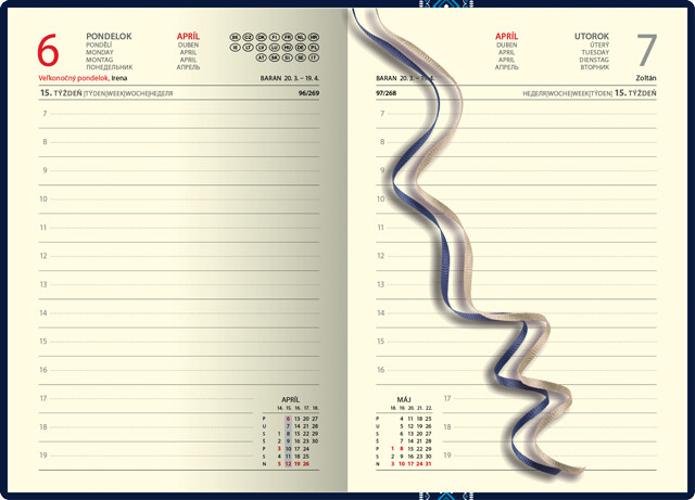 Obľúbený denný diár má oderuvzdorný povrch s motívom folklórnej stuhy. Efektná razba fóliou a 3D lak vytvárajú dokonalý dizajn. Jediný svojho druhu na trhu. Obsahuje slovenské kalendárium.