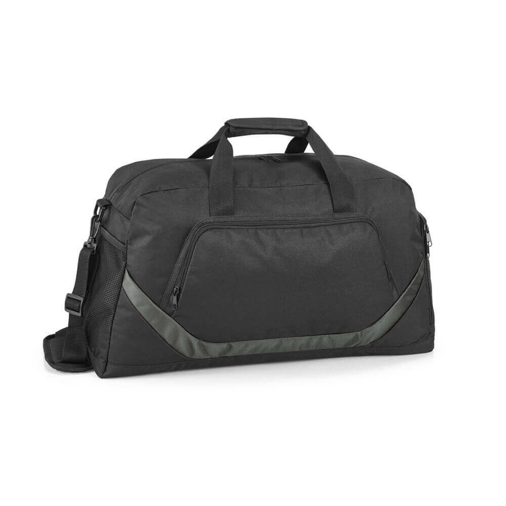 Športová taška z 300D a 1680D s vnútornou podšívkou a spodnou časťou s vystuženou doskou. Taška má 1 prednú kapsu na zips a 2 bočné kapsy: 1 sieťovanú kapsu a ďalšiu kapsu na topánky na zips. Ramenný popruh je nastaviteľný a má vystlanú výstuž. 550 x 300 x 250 mm
