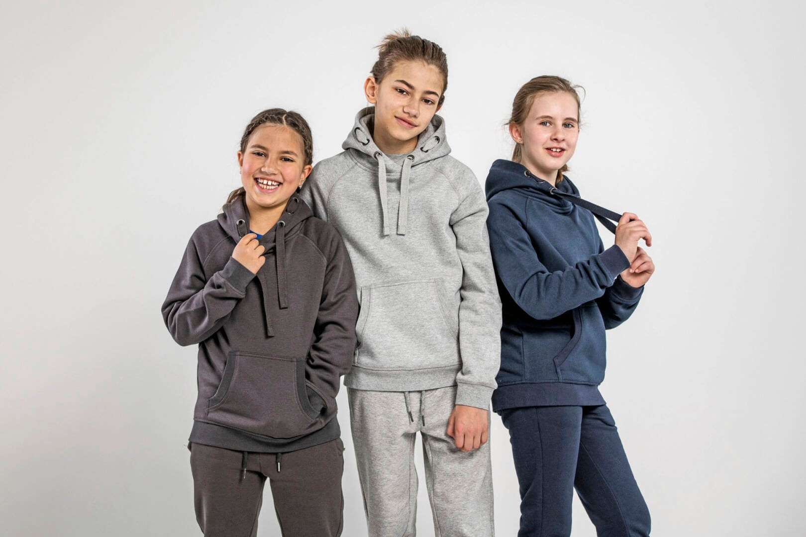 Kruhovo dopriadaná česaná bavlna / recyklovaný polyester (česaná vnútorná strana) | Mäkká zmesová tkanina | Ochrana proti žmolkovaniu a zrazeniu, stálofarebné | Šev, okraje vreciek a manžety sú vyrobené z vysoko kvalitného 1 x 1 rebrovaného úpletu | Všetky švy sú zakončené plochým dekoratívnym prešívaním | Každý s tromi kovovými očkami v retro štýle | Široká, farebne zladená šnúrka | Raglánové rukávy | Bez štítkov
