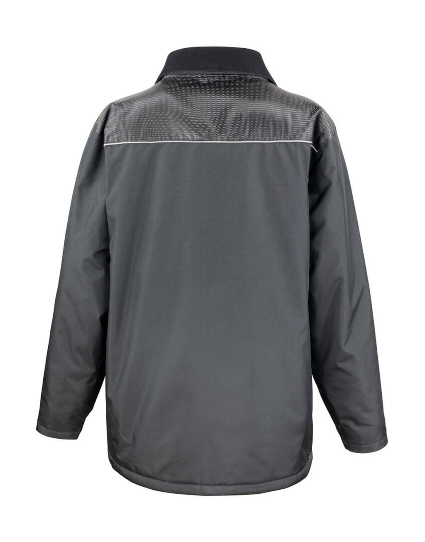 ·zvršok: 100% polyester Oxford 300D s povrchovou úpravou PVC ·podšívka: 100% polyester Taffera 210T (prišitá) ·výplň: 100% polyester vatovanie ·odnímateľná kapucňa pomocou zipsu, podšívka na goliery- jemná vlna ·obojstranný zips so 4 vymeniteľnými farebnými tahačmi a príklopom so zapínaním na cvoky a suchý zips ·rôzne vrecká ·plne podlepené švy (vodotesné do 2000 mm) ·lem nastaviteľný šnúrkou ·manžety na suchý zips ·detail- reflexné lemovanie ·vhodná pre výšivku a transférovú tlač