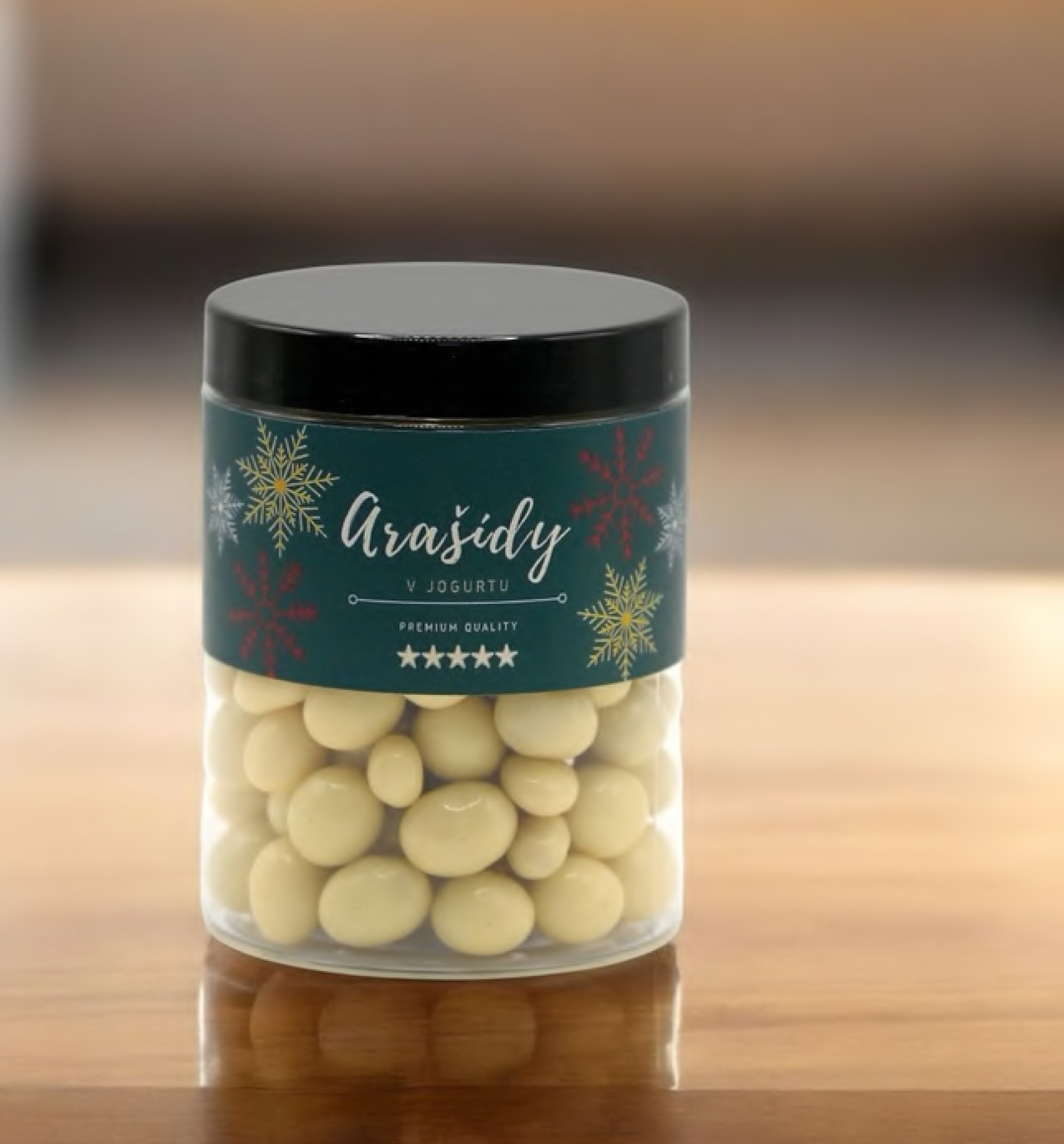 Zloženie: arašidy 45 %, cukor, palmový olej, srvátka, ryžová múka, jogurtový prášok, emulgátor: slnečnicový lecitín, leštiace látky: arabská guma, šelak
