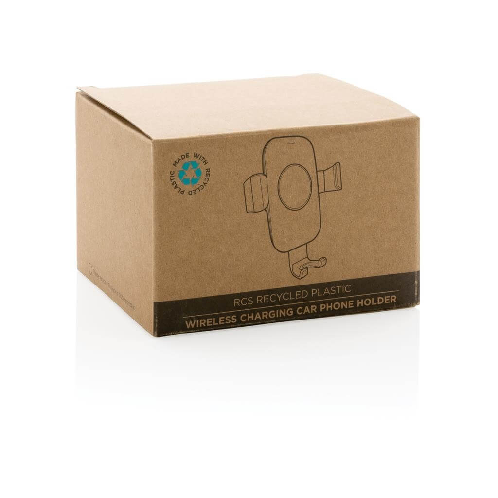 Držiak telefónu do auta s rýchlym 10 W bezdrôtovým nabíjaním. Vyrobený z RCS recyklovaného ABS plastu. RCS (Recycled Claim Standard) je globálny štandard, ktorý umožňuje overiť použitie recyklovaného materiálu v produkte naprieč celým dodávateľským reťazcom. Celkový podiel recyklátu podľa váhy produktu: 73 %. Bezdrôtové nabíjanie je kompatibilné so všetkými telefónmi podporujúcimi QI, ako sú najnovšie generácie Android, iPhone 8 a vyššie. Vrátane USB C nabíjacieho kábla z RCS recyklovaného TPE. USB vstup: 9V/2A. Bezdrôtový výstup: 9V/1,1A (10W). Balené v FSC® kraftovej darčekovej krabičke. Vhodné pre telefóny s veľkosťou do 6,5".