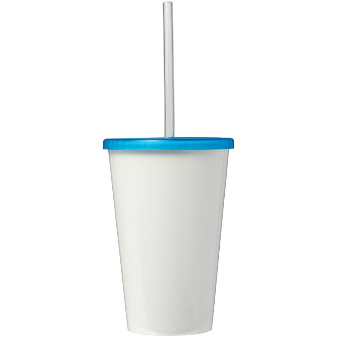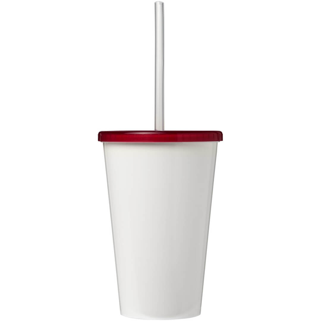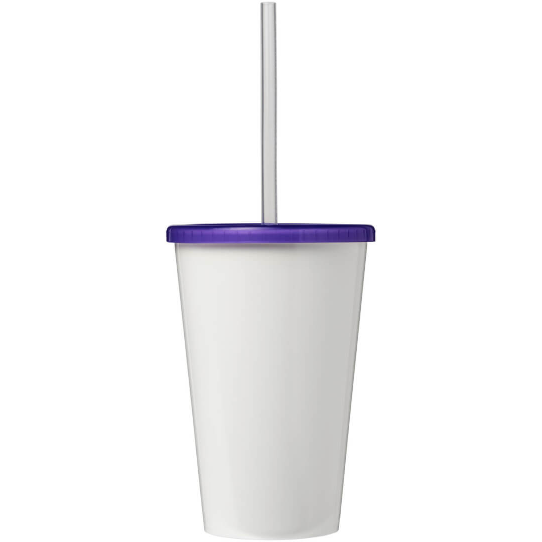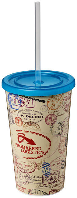 Dvojplášťový izolovaný pohár. Pohár sa vyznačuje plnofarebný dizajnom prispôsobeným výrobku, ktorý ho robí odolný s dlhou životnosťou. Dodáva sa s pružným silikónovým slamkou. Objem je 350 ml. Vyrobené v Spojenom kráľovstve. Plast PP, silikón.