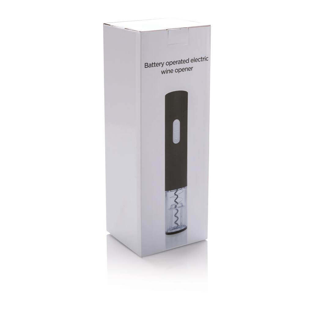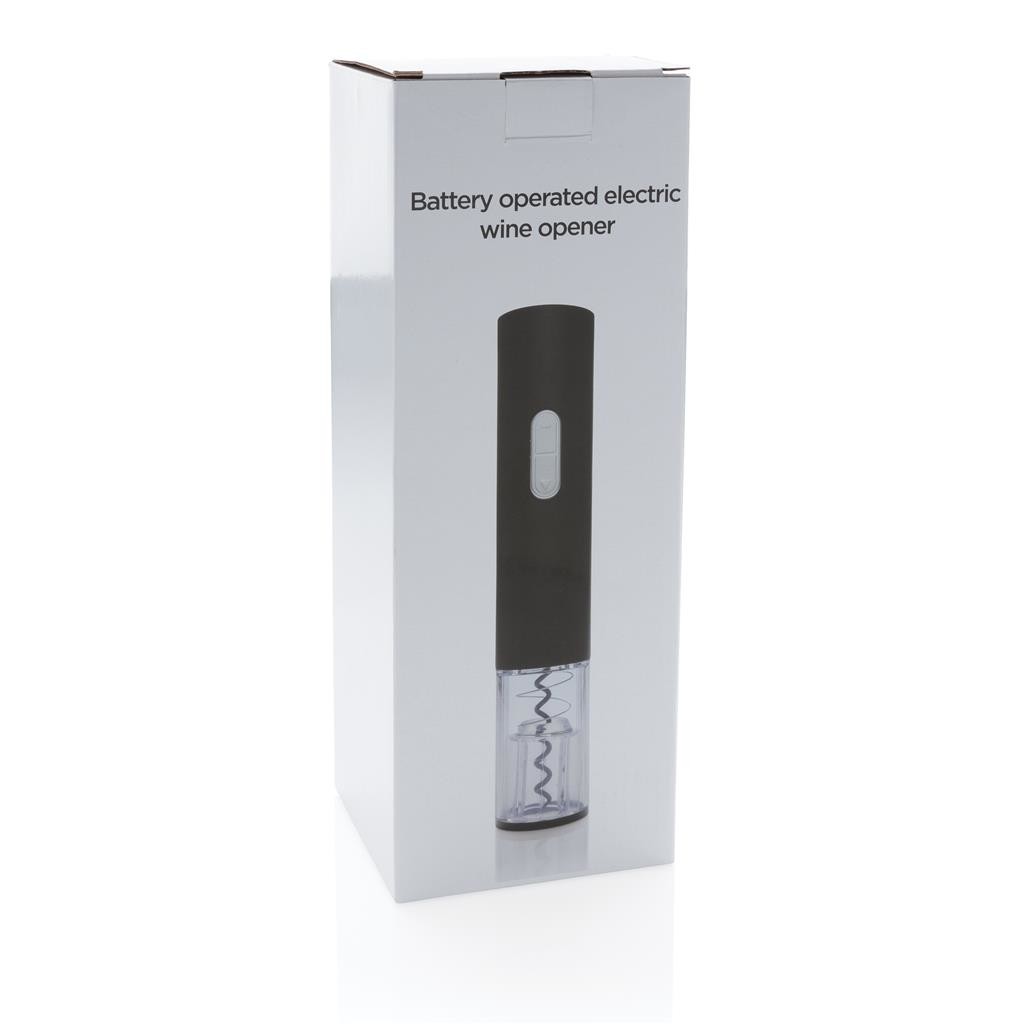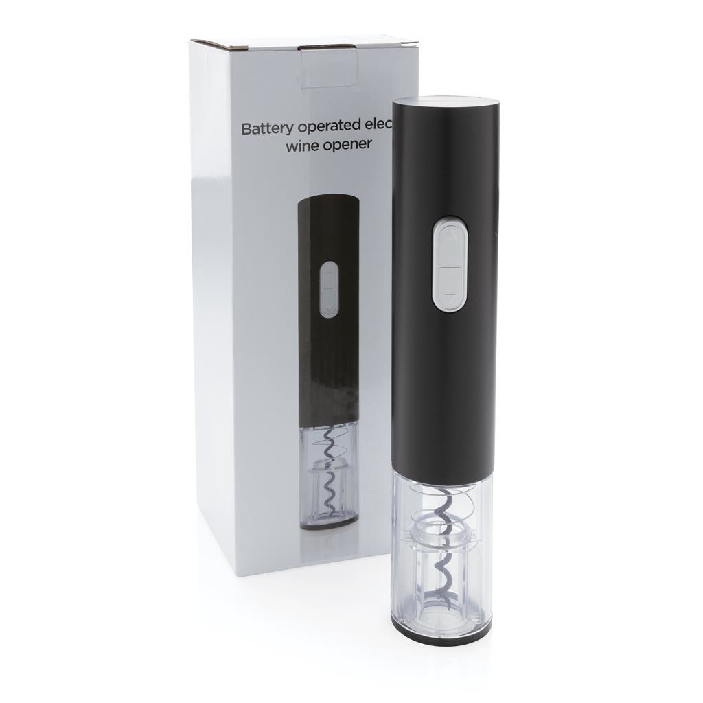 Táto elektrická vývrtka na batérie otvorí fľašu vína stlačením jediného tlačidla. Vrátane 4 AA batérie. Balené v darčekovej krabičke. 4 batérie typu AA súčasť balenia.