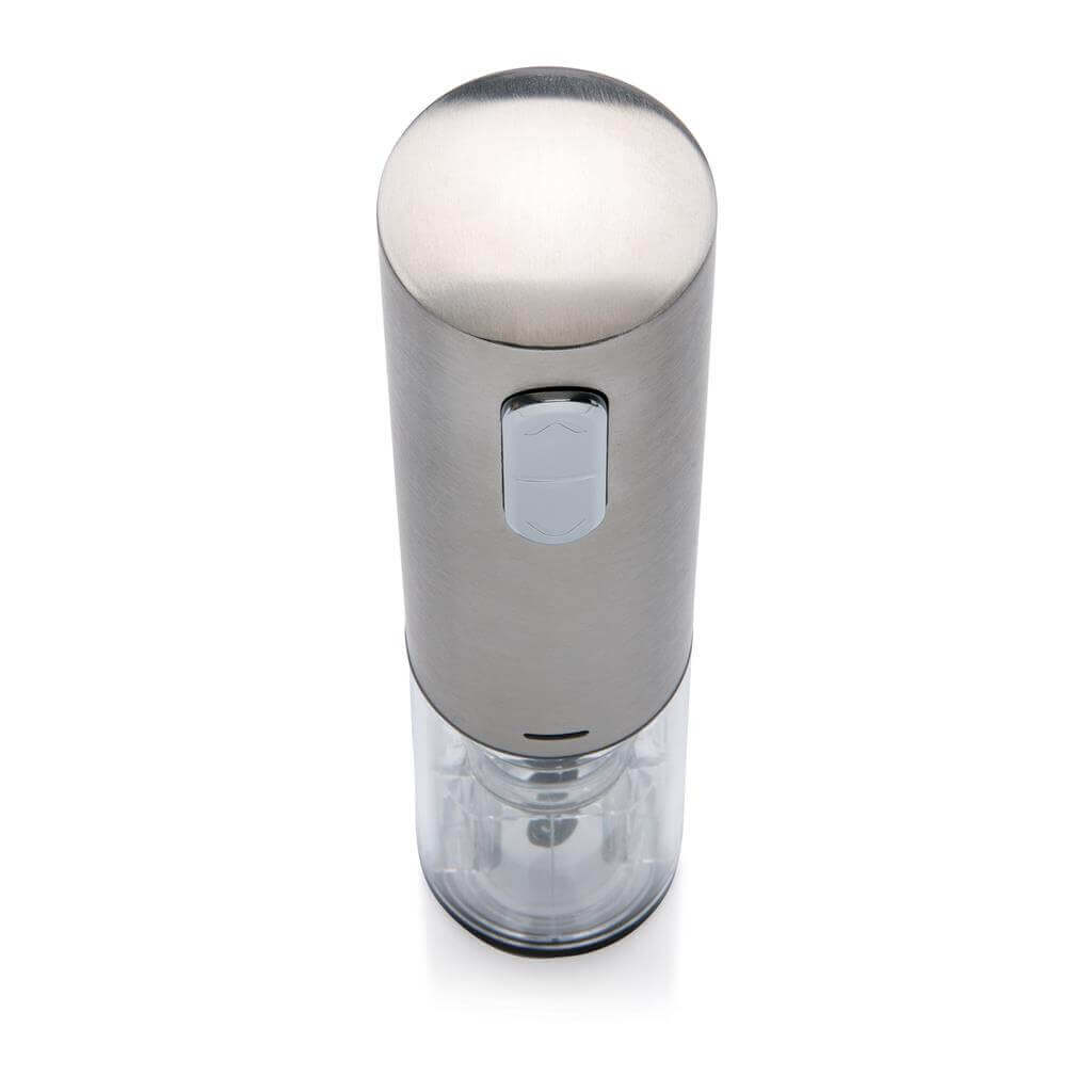 Táto elektrická vývrtka na batérie otvorí fľašu stlačením tlačidla. Vrátane 4 batérií AA. Zabalená v darčekovej škatuli. 3 batérie typu Li-ion súčasť balenia.