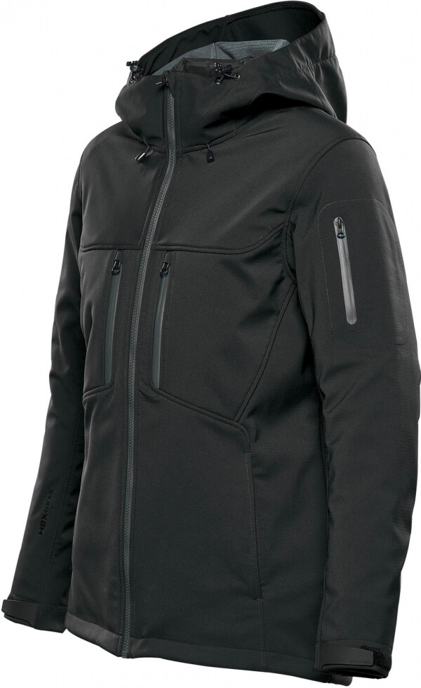 Epsilon System dámska bunda, gramáž: vonkajšia: 305 g / m²; 95% nylon, 5% elastan, vyrobená: podšívka: 100% Polyester (Microfleece), odzipsovateľná termálne podšívka: 100% nylon (40 g / m²), H2XTREME® vodotesný (8 000 mm) a priedušný (5 000 g / m²) vonkajší plášť, vodoodpudivá povrchová úprava bez obsahu PFC, mechanické roztiahnutie, vodotesný zips YKK® AquaGuard®, kapucňa s tvárovým štítom, chránič krku a brady, dvojité hrudné vrecká na zips, ručné vrecká na zips, vrecko na rukáve na zips, nastaviteľné manžety sa suchým zipsom.