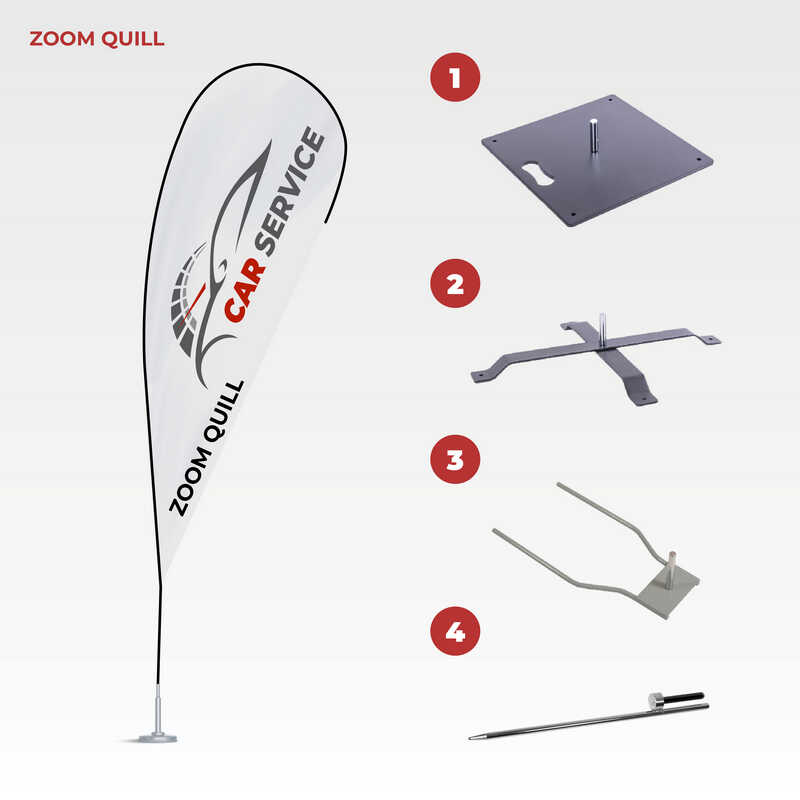 Vlajky si môžete zakúpiť samostatne ako plachtu, s komplet konštrukciou, s podstavcom a prípadne záťažovým vakom. Vlajky sú balené v prenosných vakoch.