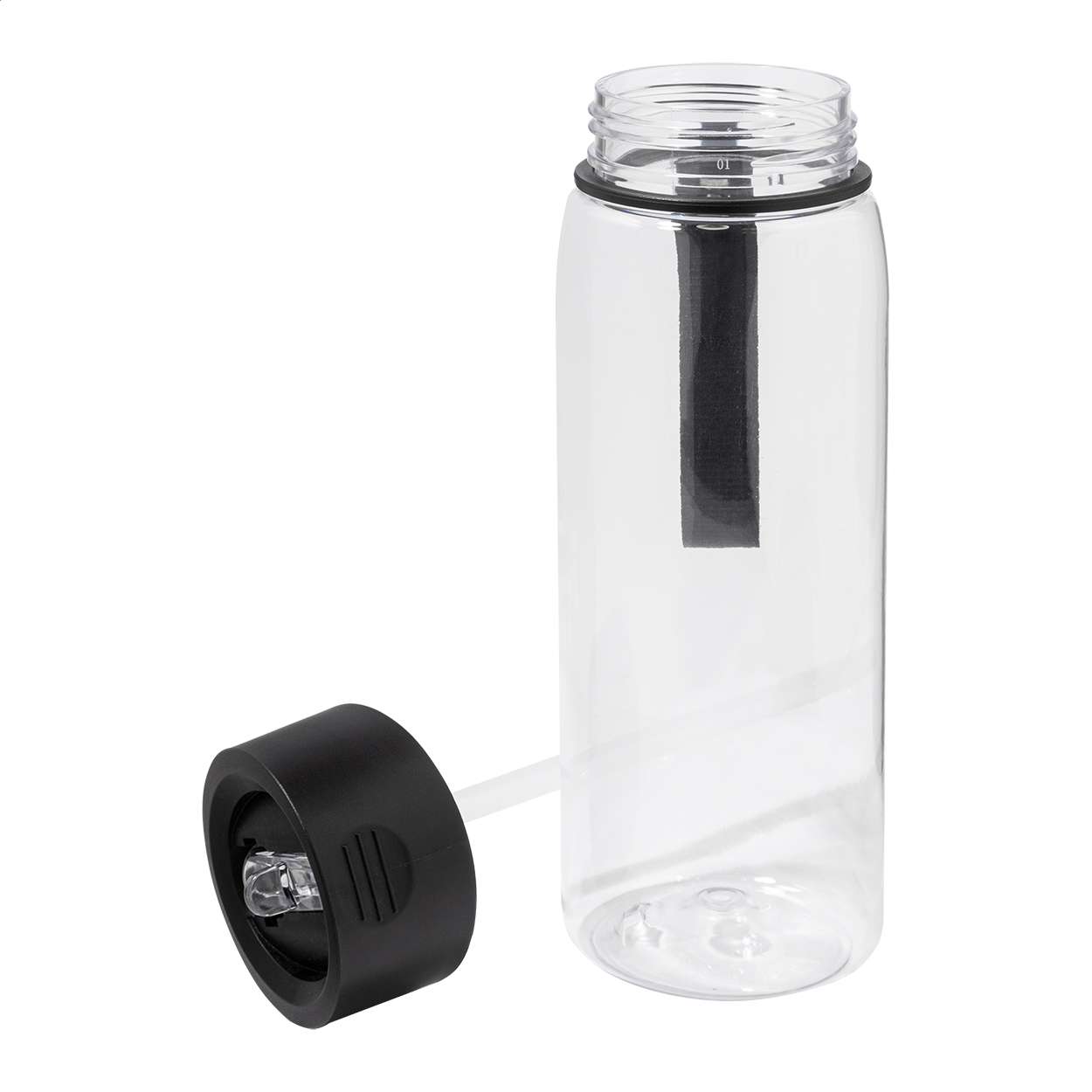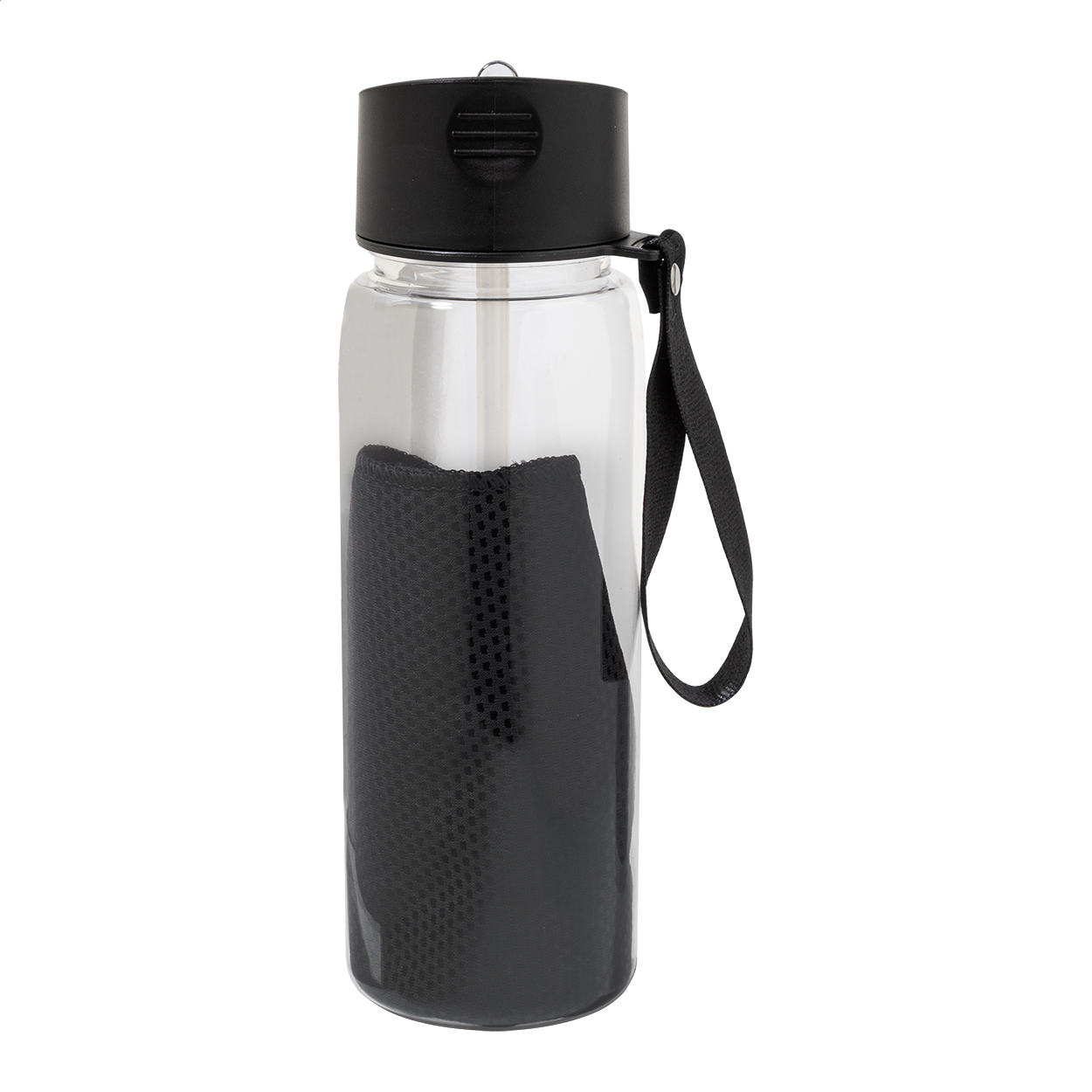Chladiaci športový uterák z RPET polyesteru v RPET športovej fľaši s PP viečkom typu flip-top, integrovanou slamkou a prenosným popruhom. Objem 800 ml. Neobsahuje BPA. Nie je vhodná pre sýtené nápoje. Veľkosť uteráka: 30 × 80 cm. New. Go Green. Vhodné do umývačky riadu: Nie. Vhodné do mirkovlnnej rúry: Nie. Odolné voči poliatiu / nepriepustné: Odolné voči poliatiu