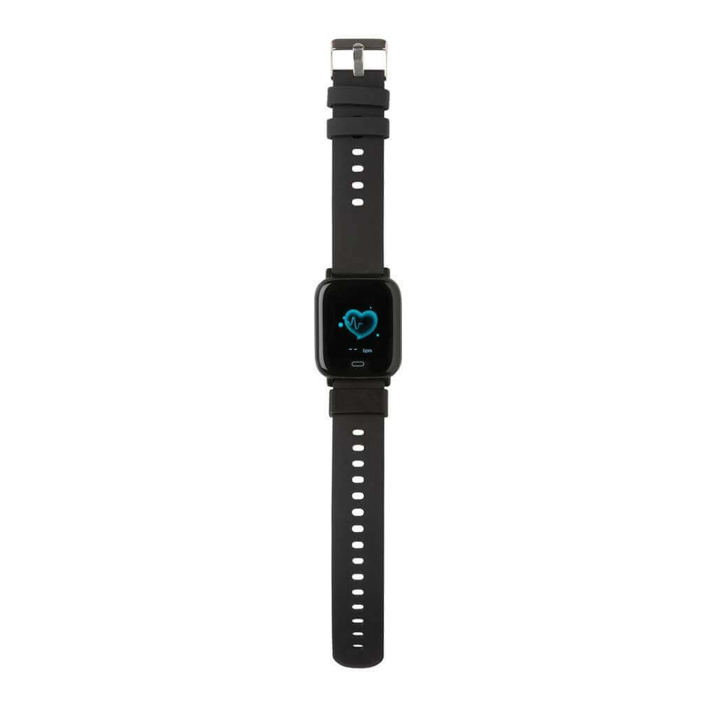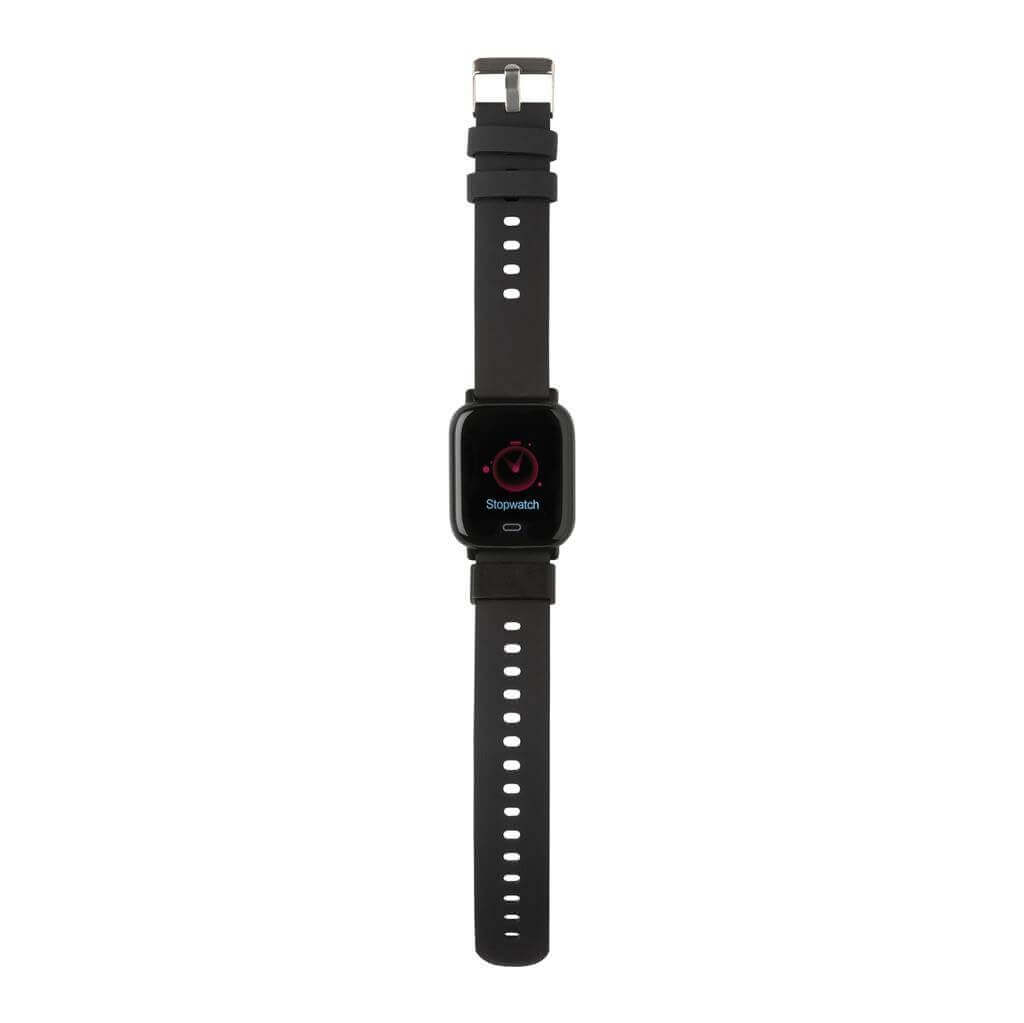 Moderné vodeodolné (IPX67) hodinky pre aktívny životný štýl s 1,3" point dotykovým farebným displejom. Vyrobené z RCS recyklovaného TPE (pások) a ABS (rám hodiniek). RCS (Recycled Claim Standard) je globálny štandard, ktorý umožňuje overiť použitie recyklovaného materiálu v produkte naprieč celým dodávateľským reťazcom Celkový podiel recyklátu podľa váhy produktu: 31% Funkcie zahŕňajú: sledovanie spánku, krokomer, meranie vzdialenosti, počítanie spálených kalórií, meranie srdcového tepu, krvného tlaku, Multi-šport režim, budík, kalendár, notifikácia : SMS, Facebook, Skype, WhatsApp a ďalšie Integrovaný mikrofón pre telefonovanie Kompatibilný s iOS 8.0 a vyššie a Android 4.0 a vyššie cez BT 5.0 Pohotovostný režim: 15 dní, pracovný režim: 5 dní Balené v FSC® kraftovej darčekovej krabičke • Produkt aj príslušenstvo bez PVC, 1 batéria typu Li-poly súčasťou balenia.